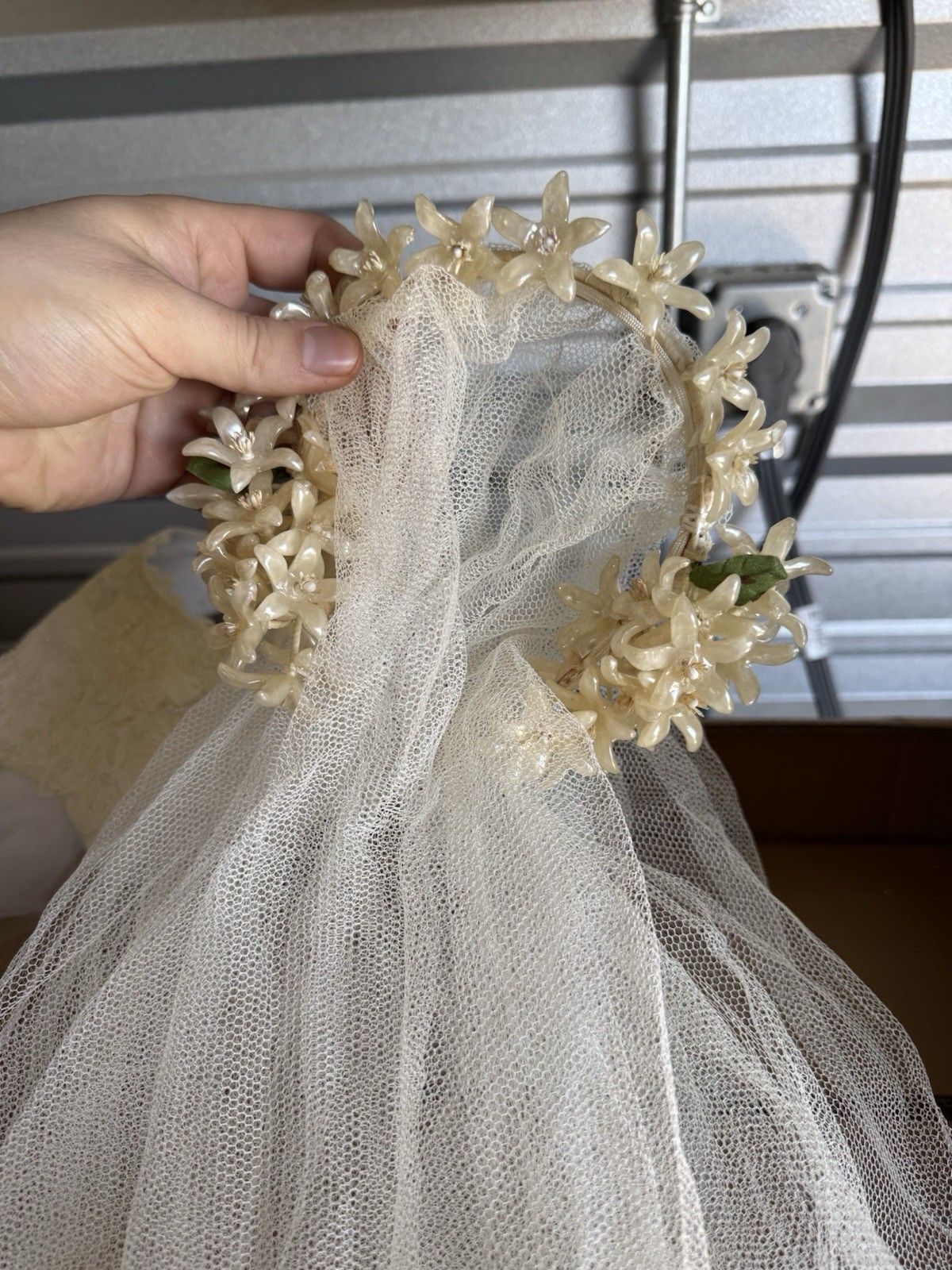 Vintage Wedding Dress Beaded Lace Flower With 2 Veils Nice Read