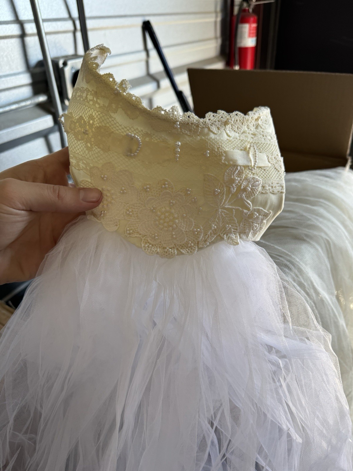 как выглядит Vintage Wedding Dress Beaded Lace Flower With 2 Veils Nice Read фото