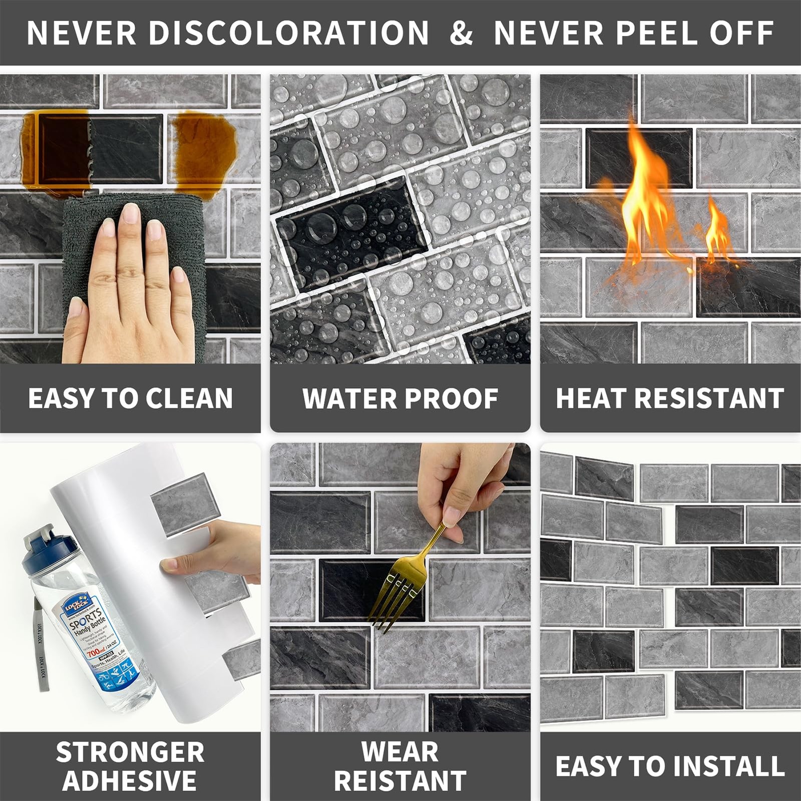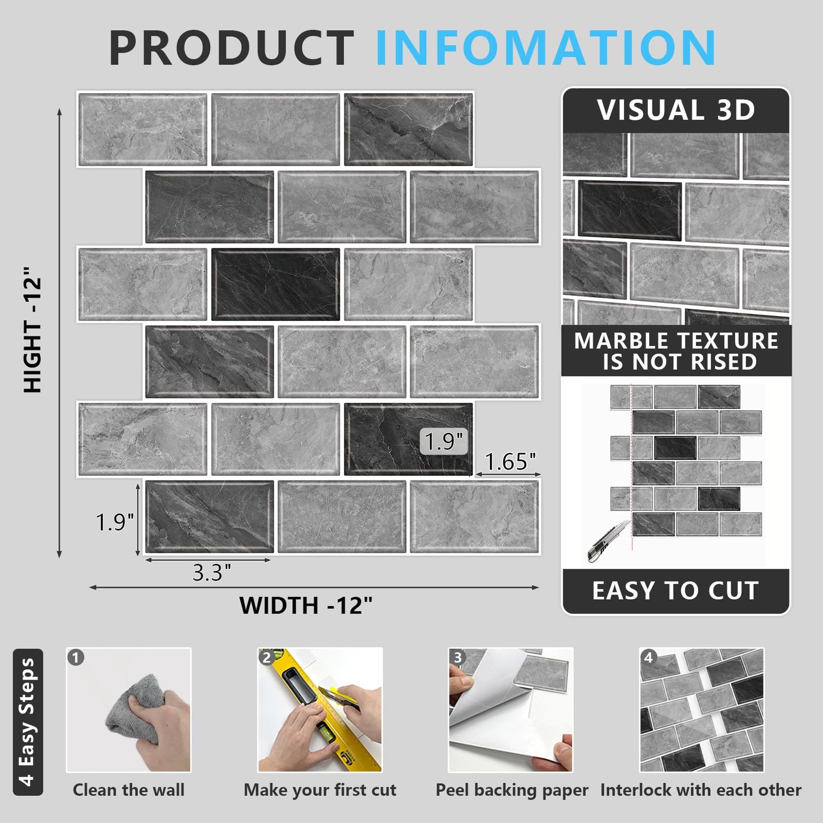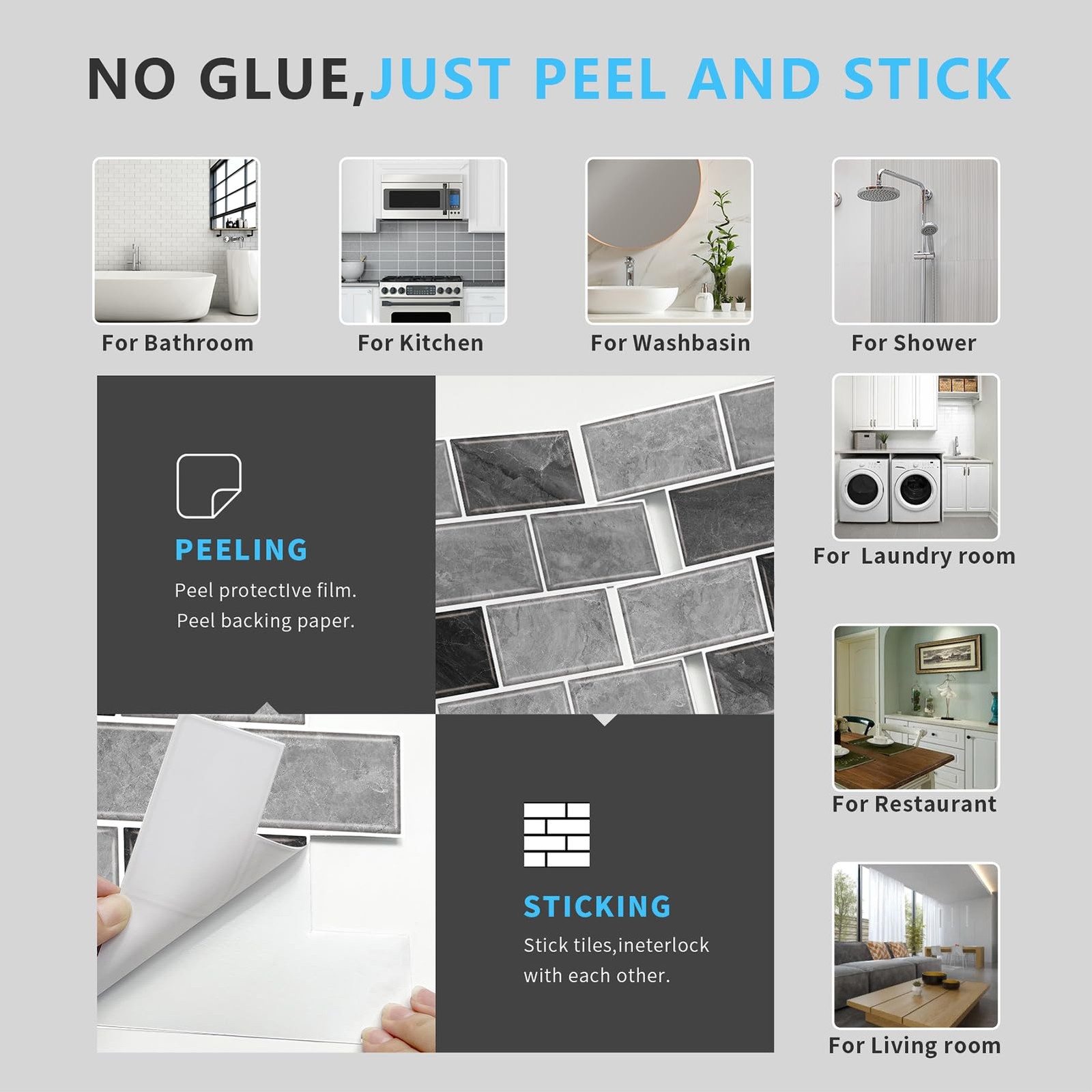 10-Sheet Peel and Stick Backsplash for Kitchen,12x12 Self Adhesive Wall Til...