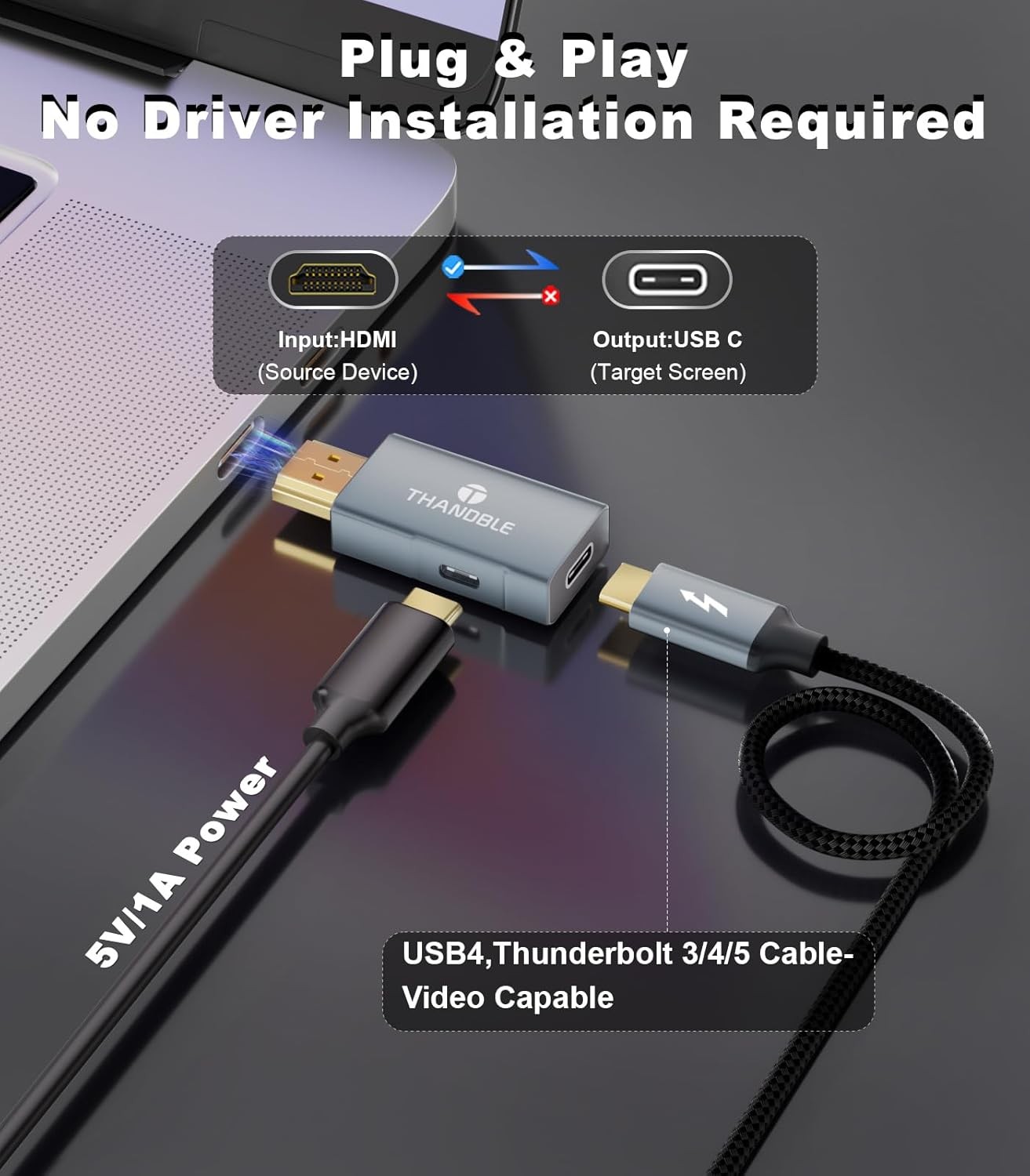 HDMI to USB C Adapter 4K60Hz, Unidirectional Male C Female Grey