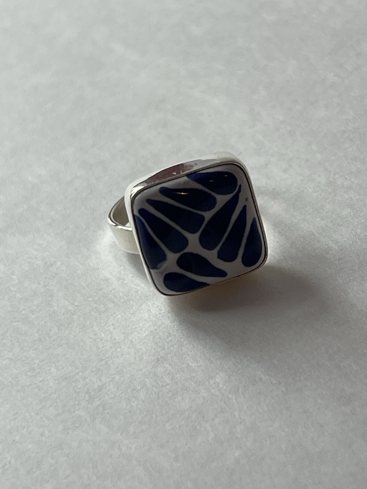 Square Talavera Ring 925 Sterling Silver Artisan Handmade