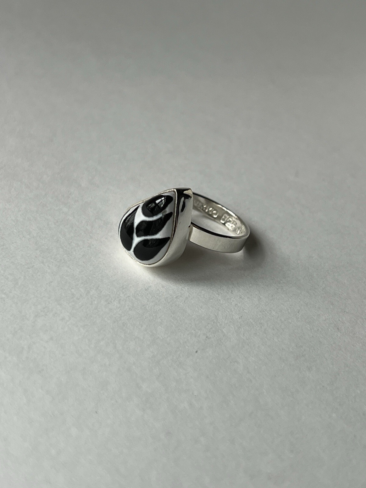 Black White Talavera Ring 925 Sterling Silver Adjustable Artisan