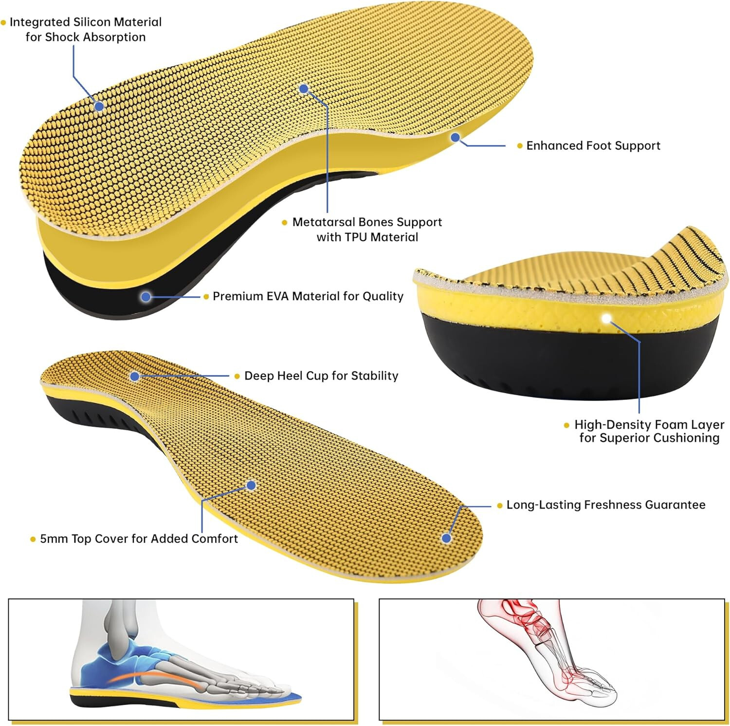 Product Benefits: High Arch, Plantar Fasciitis, Foot Pain
