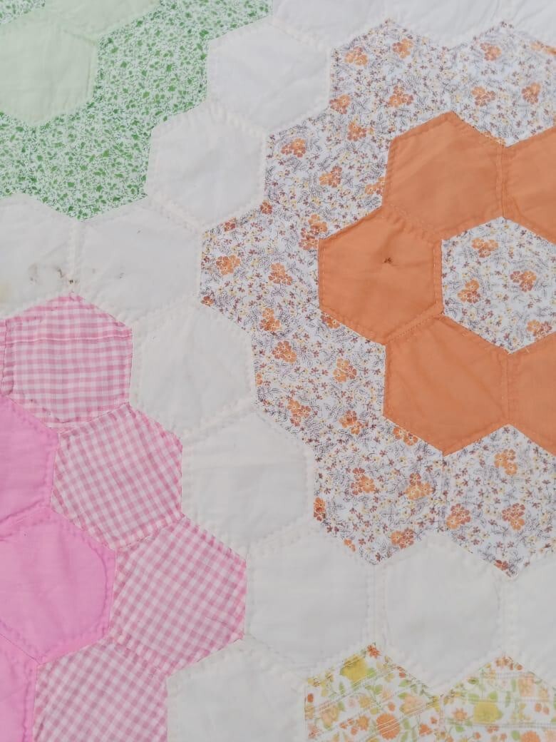 Vintage Beautiful Quilt Different Pieces Hand Woven size 91x72 inches
