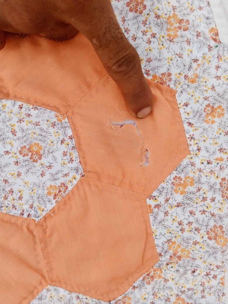 как выглядит Vintage Beautiful Quilt Different Pieces Hand Woven size 91x72 inches фото