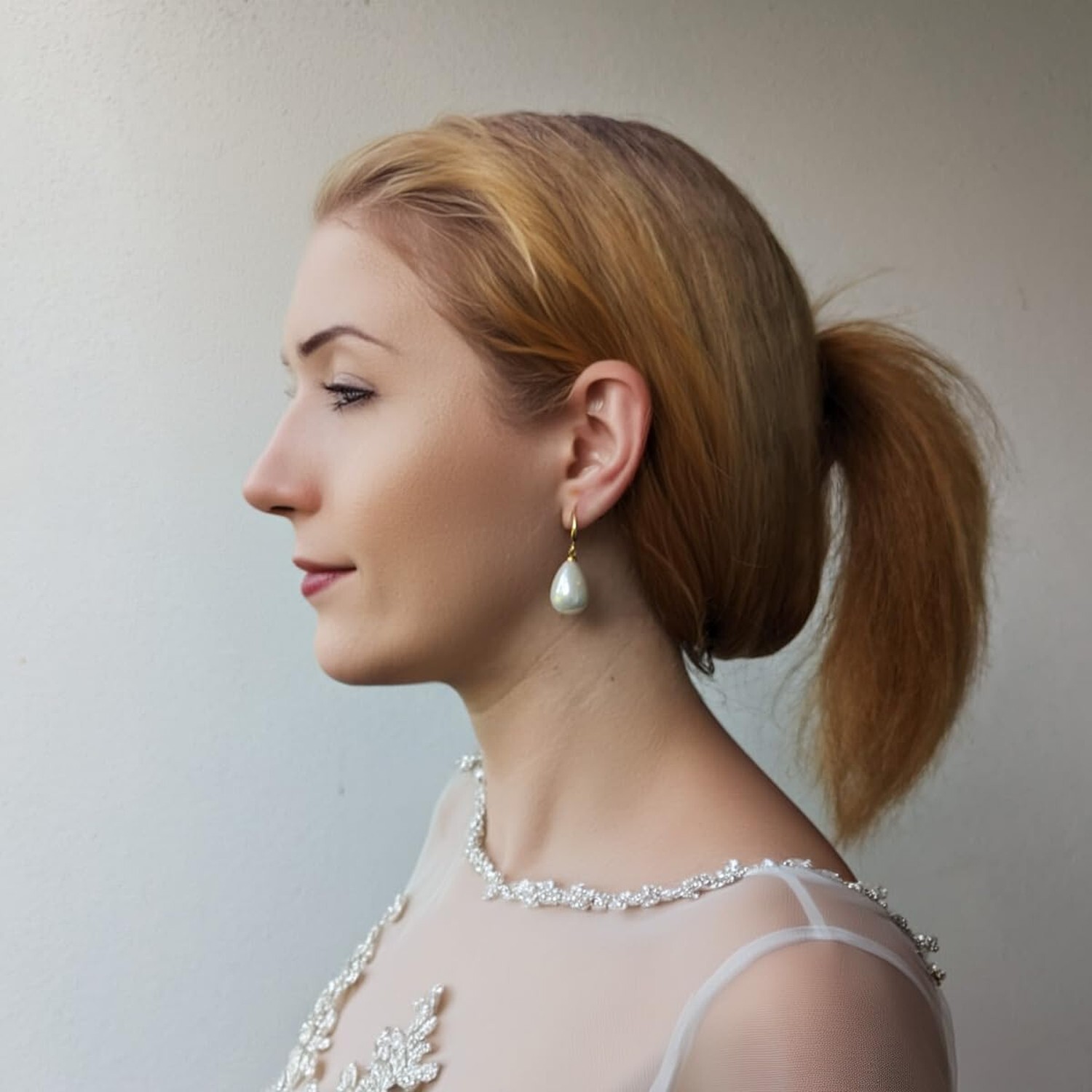 Elegant Teardrop Pearl Earrings for Women - Silver or Gold Plated, Synthetic ...