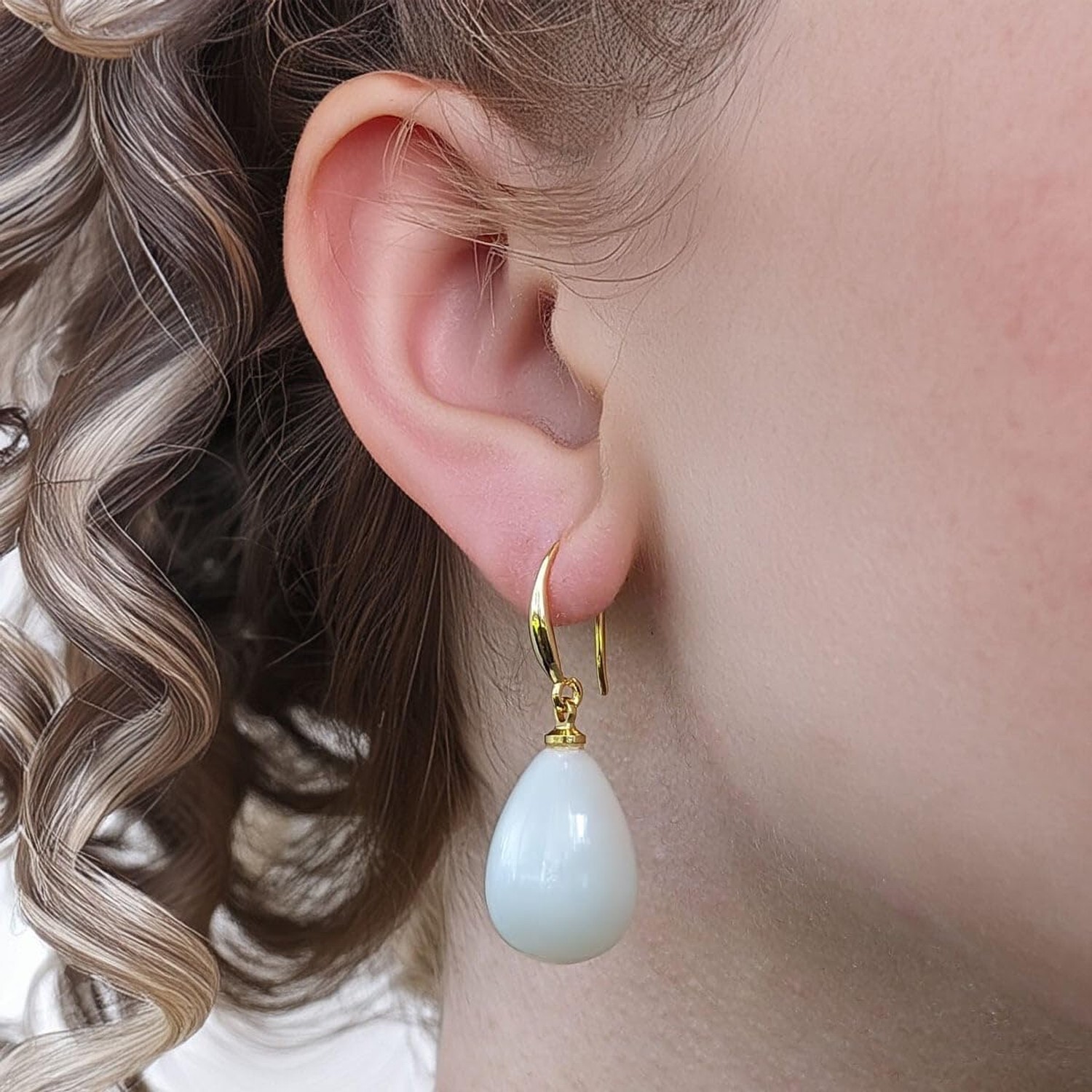 как выглядит Elegant Teardrop Pearl Earrings for Women - Silver or Gold Plated, Synthetic ... фото