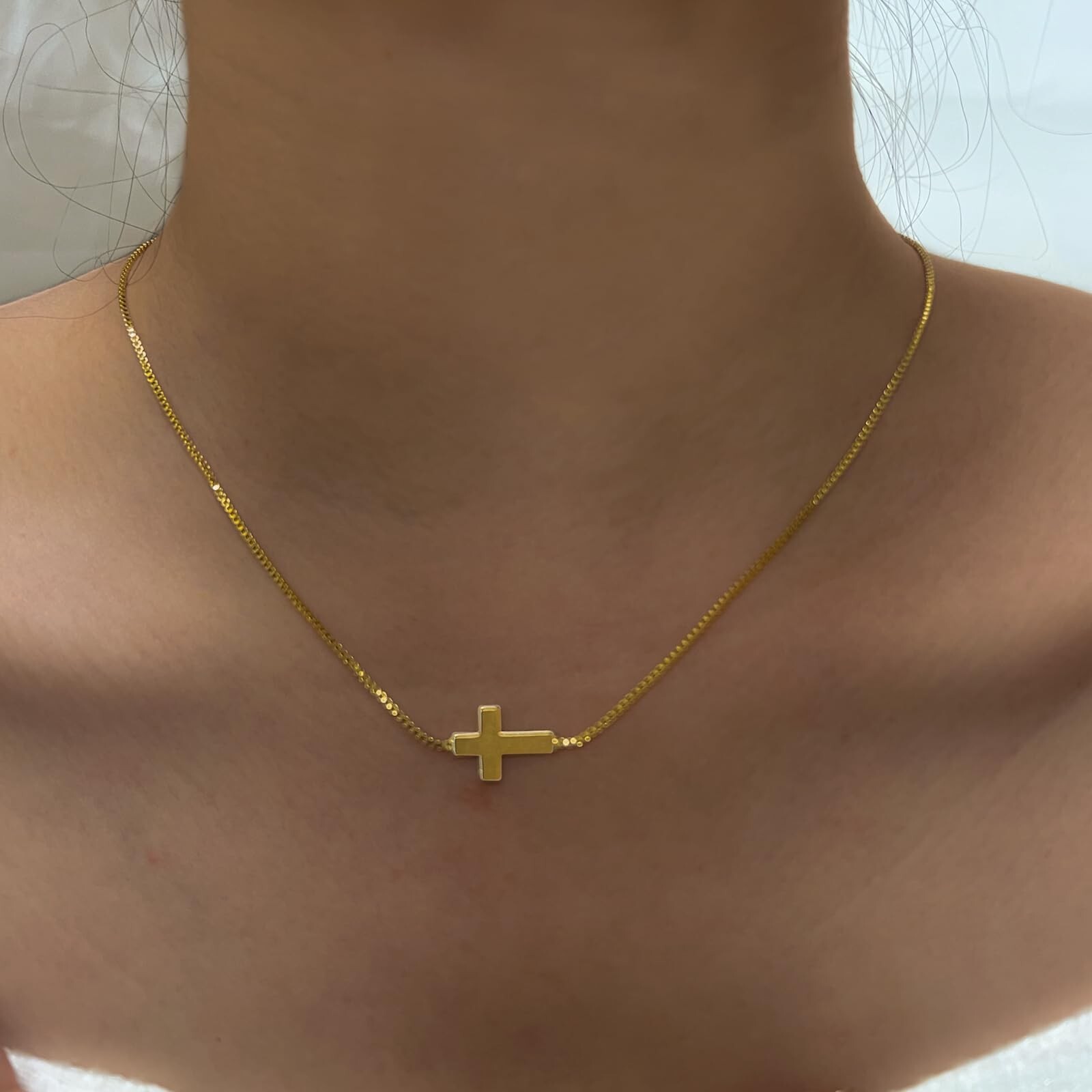 14K Gold Plated Dainty Cross Pendant Necklace for Women Girls 8211; Elegant Rel