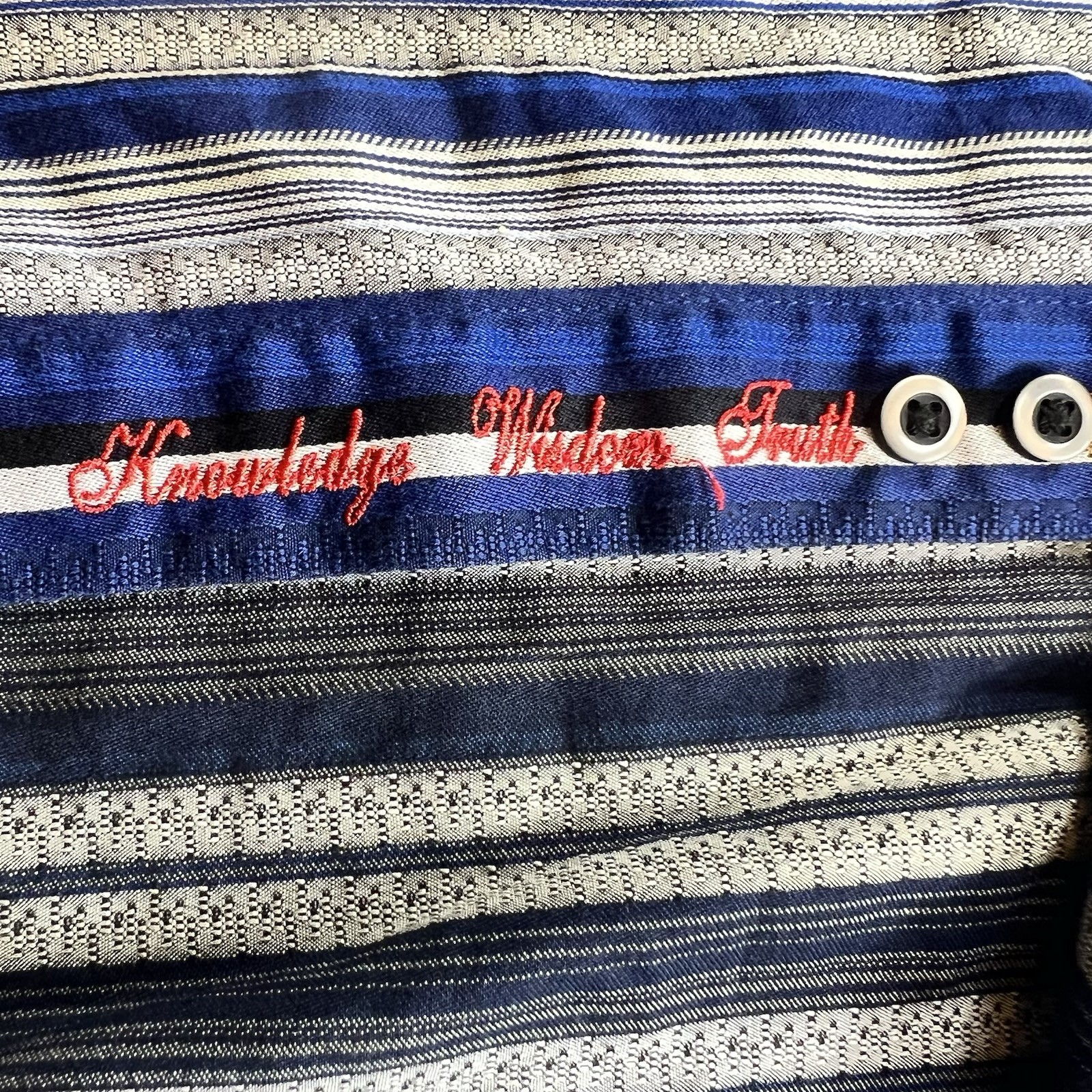 как выглядит Robert Graham Shirt Mens Size Med Blue Gold Striped Long Sleeve Flip Cuff Trim фото