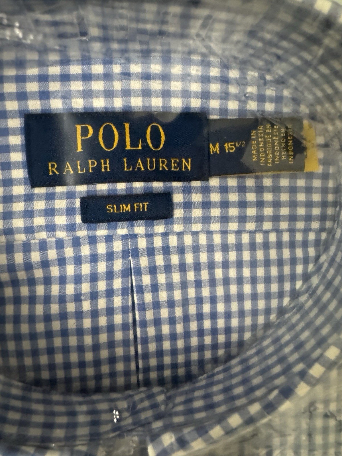 125 Polo Ralph Lauren Men s Slim Fit Stretch Poplin Shirt Blue/White Check M