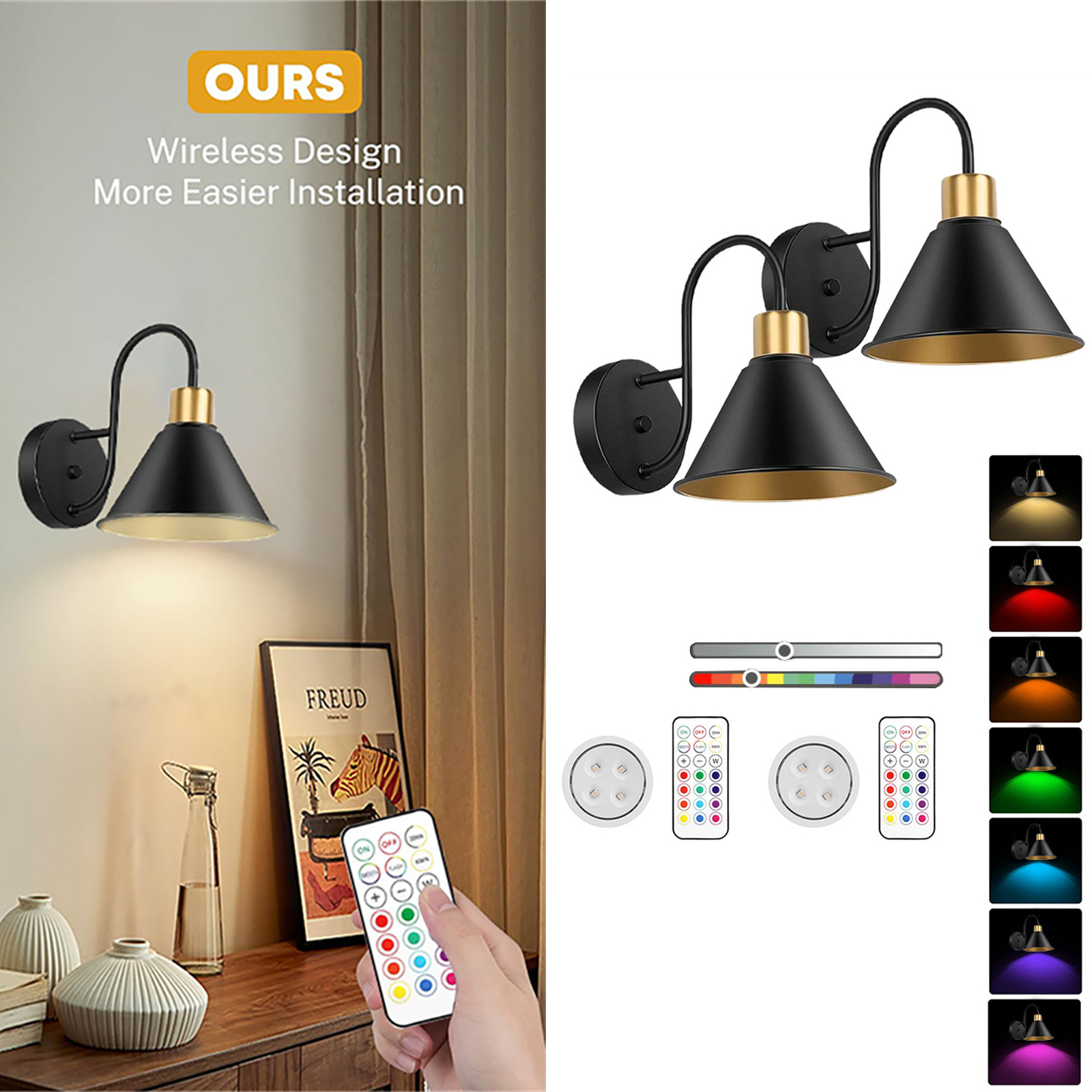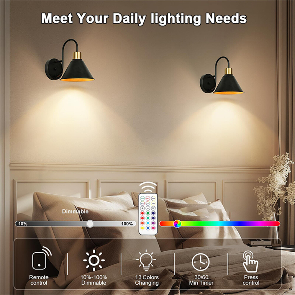 Battery Operated Wall Sconces with Remote Set of 2 Rechargeable Wall Light 2PCS