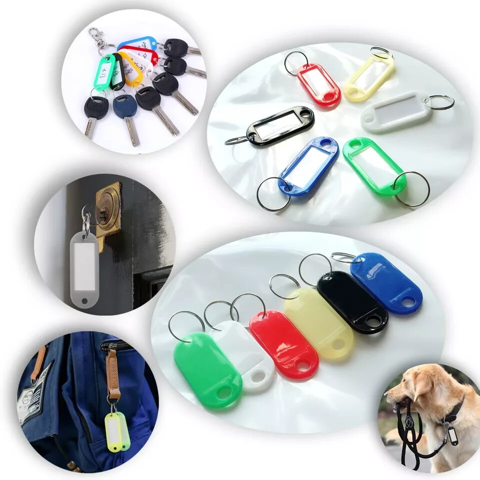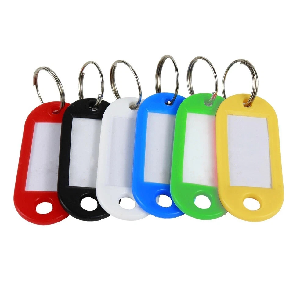 как выглядит 120 Pack Plastic Key Tags with Label Window ID Tag Split Ring Keychain 6 Colors фото