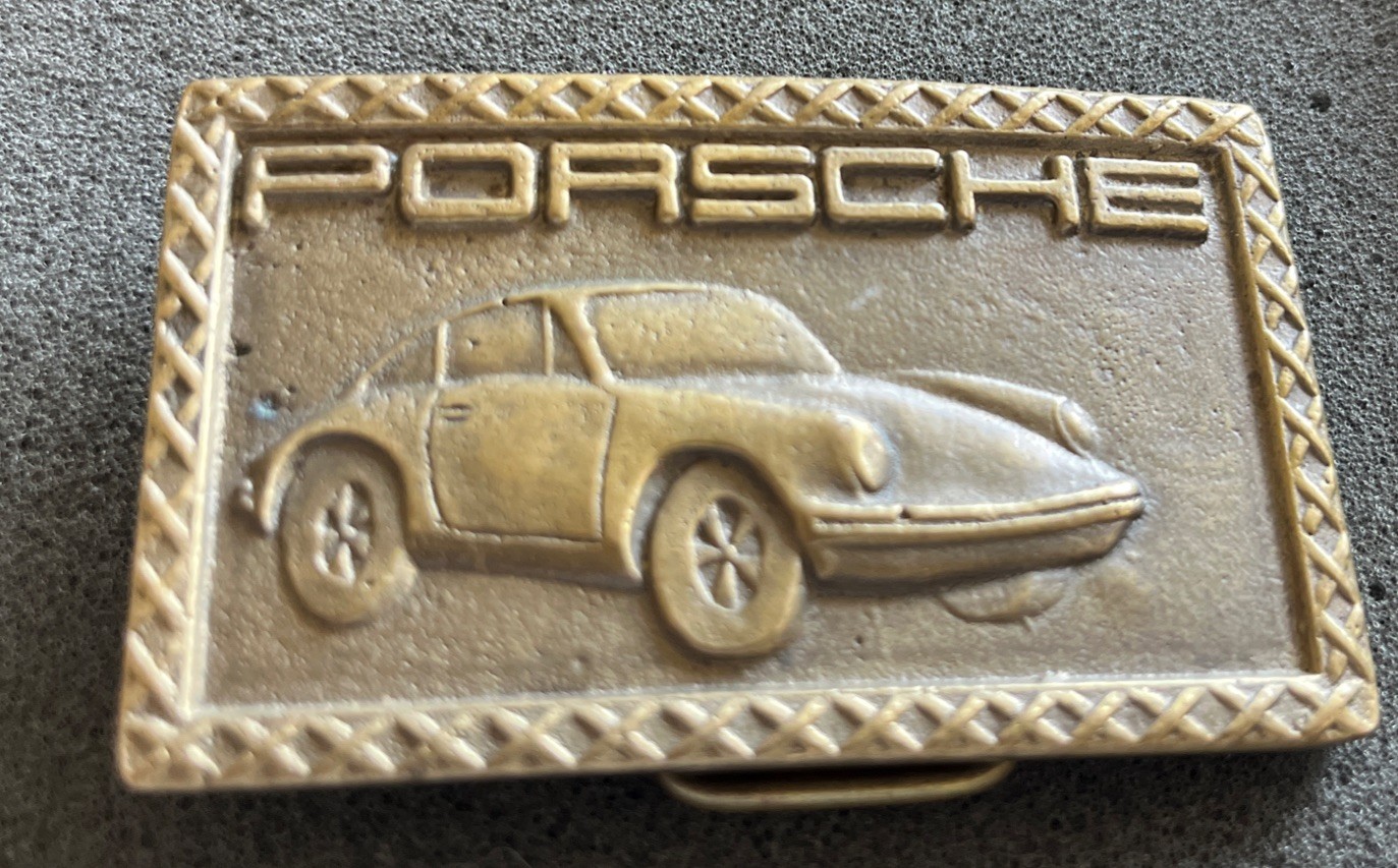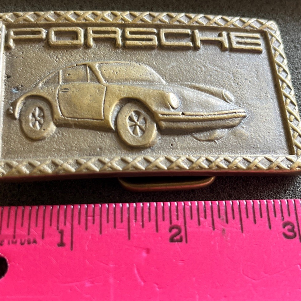 как выглядит Vintage Porsche Log 911 Sports Car Metal Belt Buckle Solid Brass фото