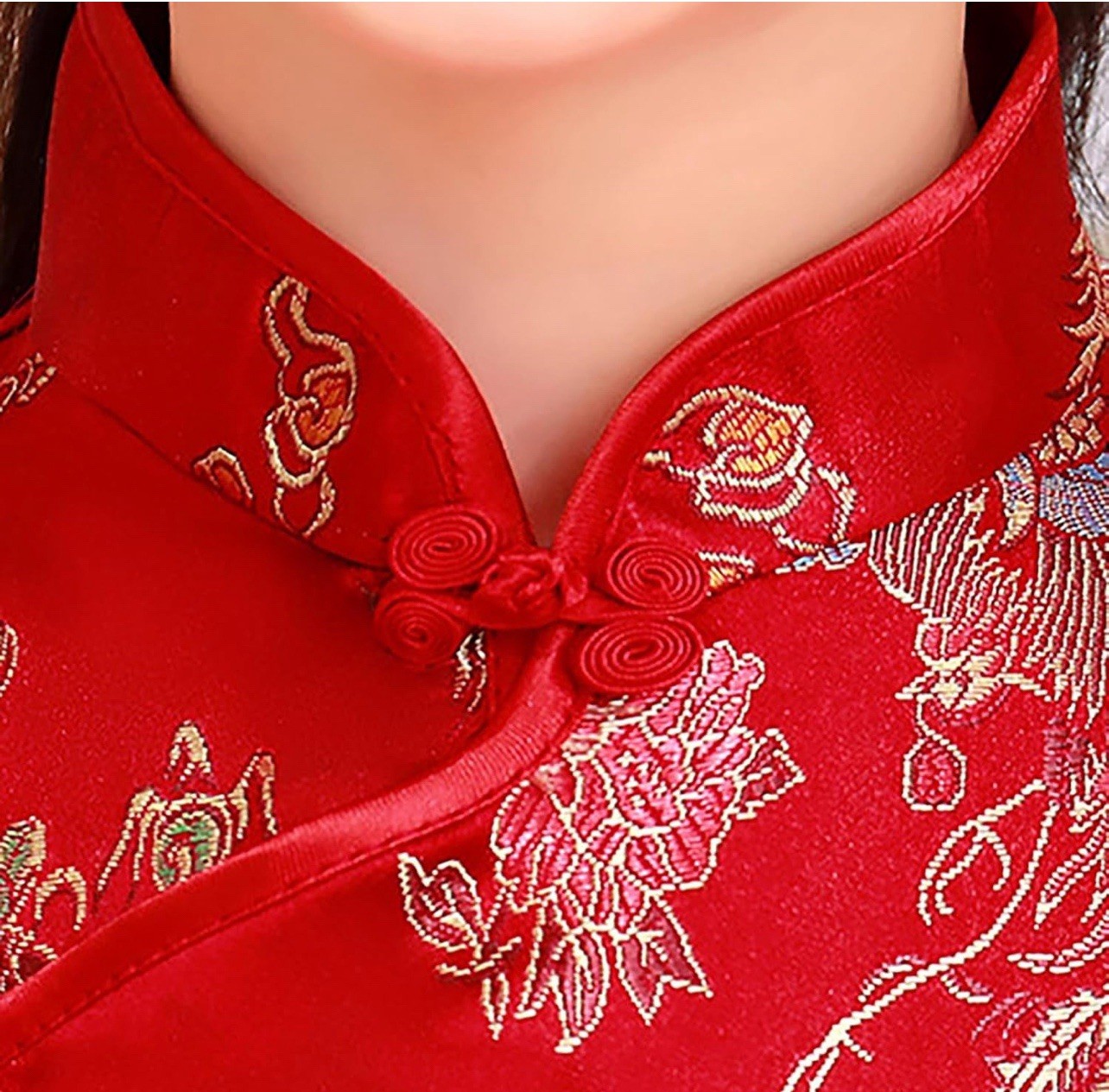 Girls Chinese Qipao Dress Dragon Pattern Short Sleeve Cheongsam Costume Size 16Y
