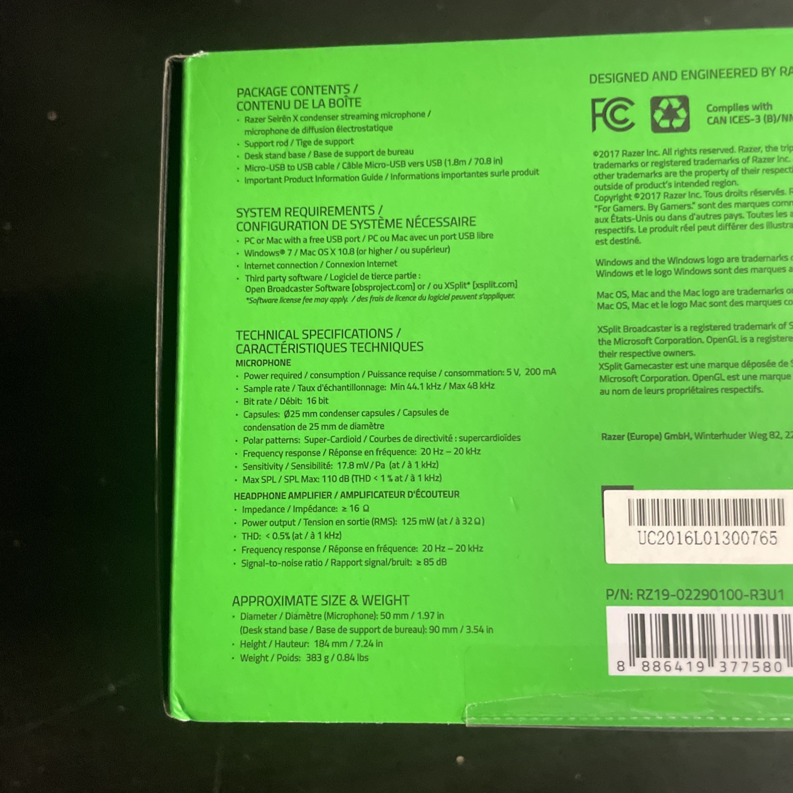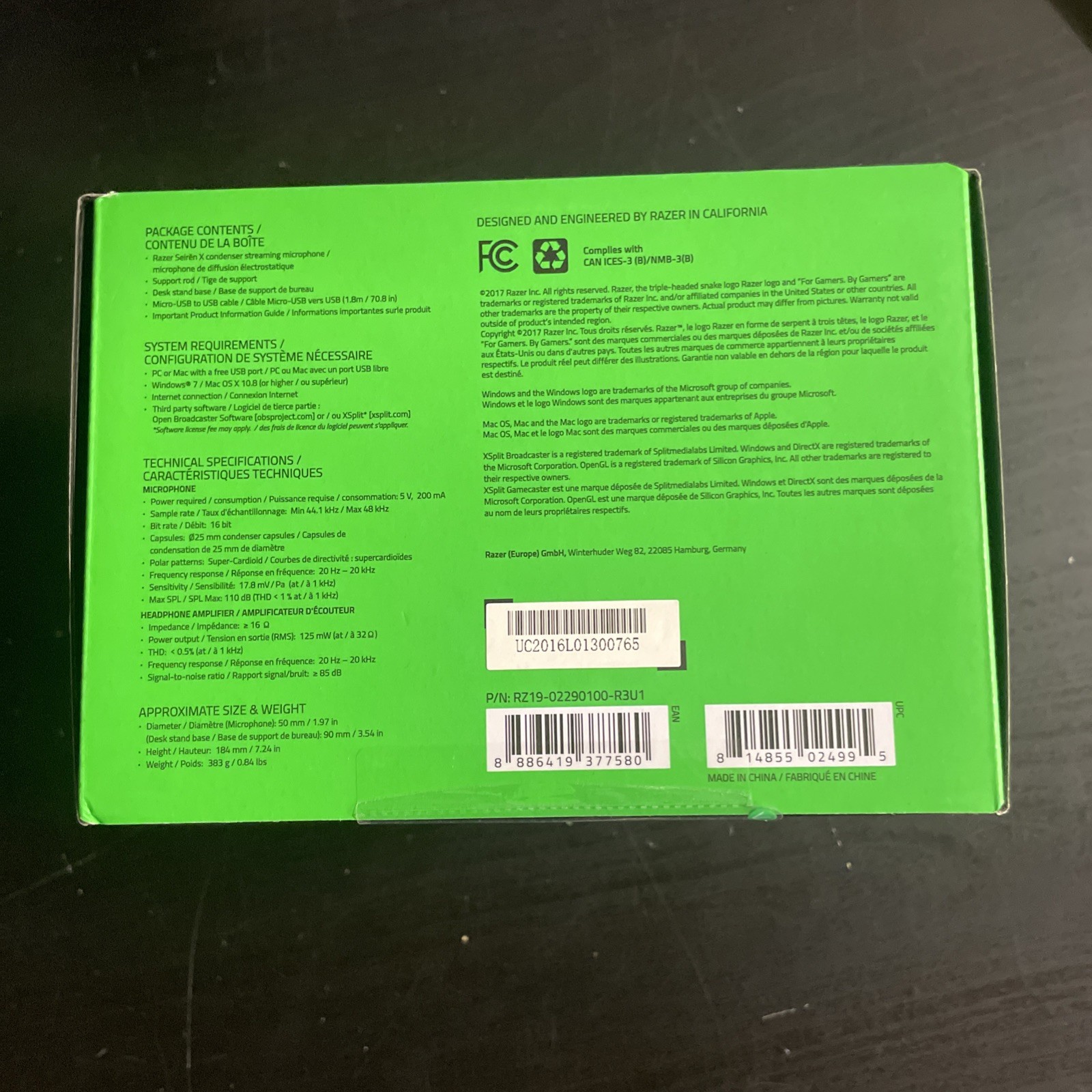 Razer Seiren X Black USB Streaming Microphone built-in Shock Mount NEW SEALED