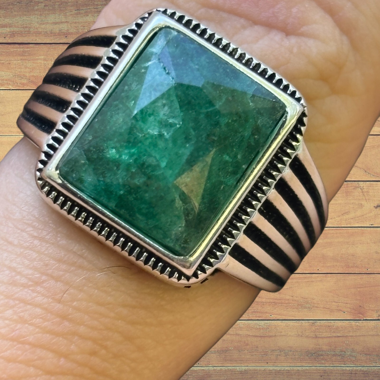 Men's Genuine Green Emerald Ring Solid 925 Sterling Silver - Sizes 6-13