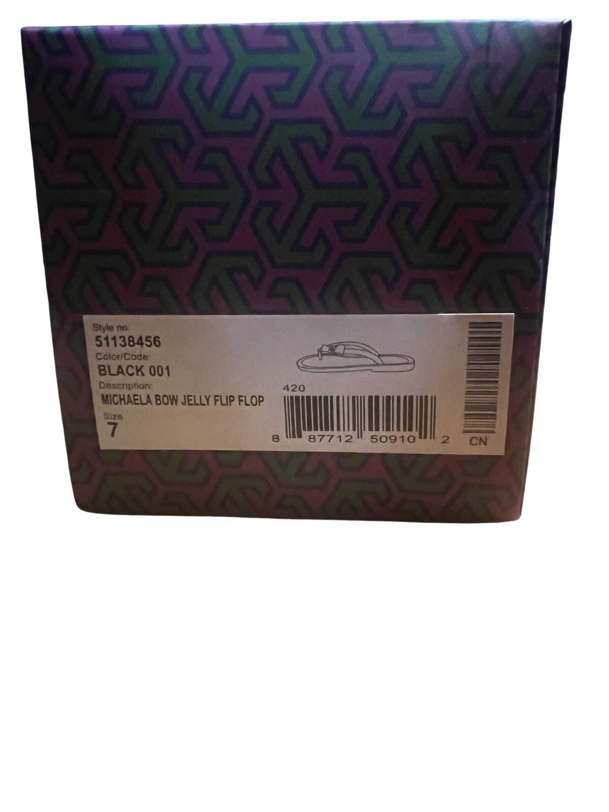 USED TORY BURCH MICHAELA BOW JELLY FLIP FLOP SANDALS SIZE 7 BLACK COLOR SHOEBOX