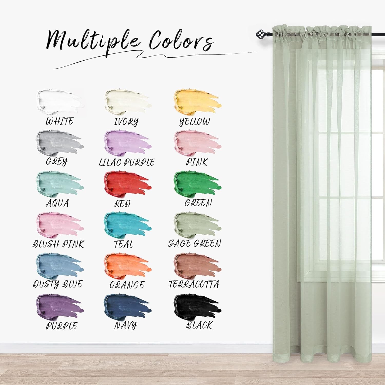 Sheer Curtains 72 Inch Length Set of 2 52 034;W x 72 034;L Pack of 2 Sage Gr
