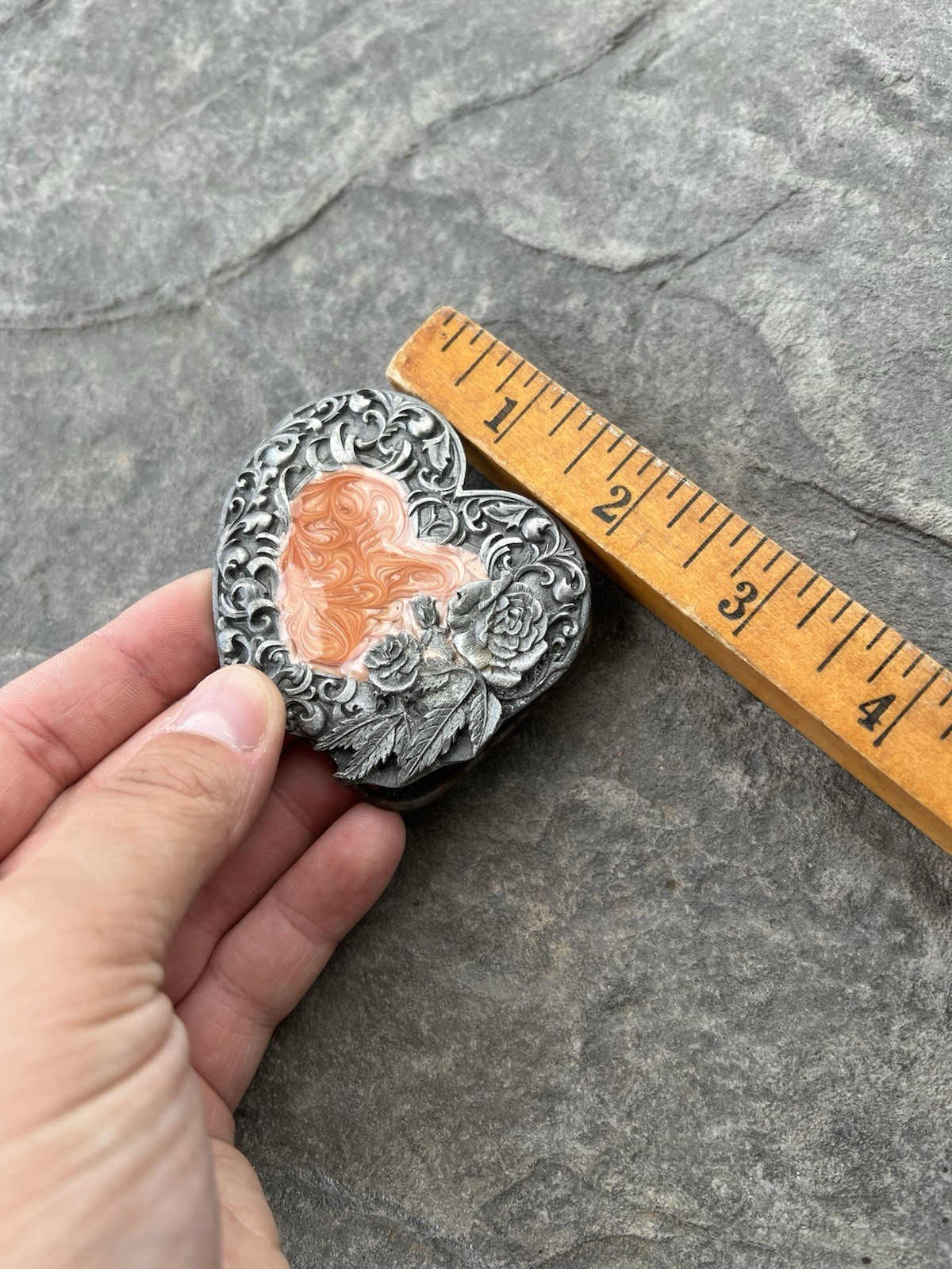как выглядит Vintage Siskiyou Pewter HEART Floral Enameled Belt Buckle 1995 USA фото