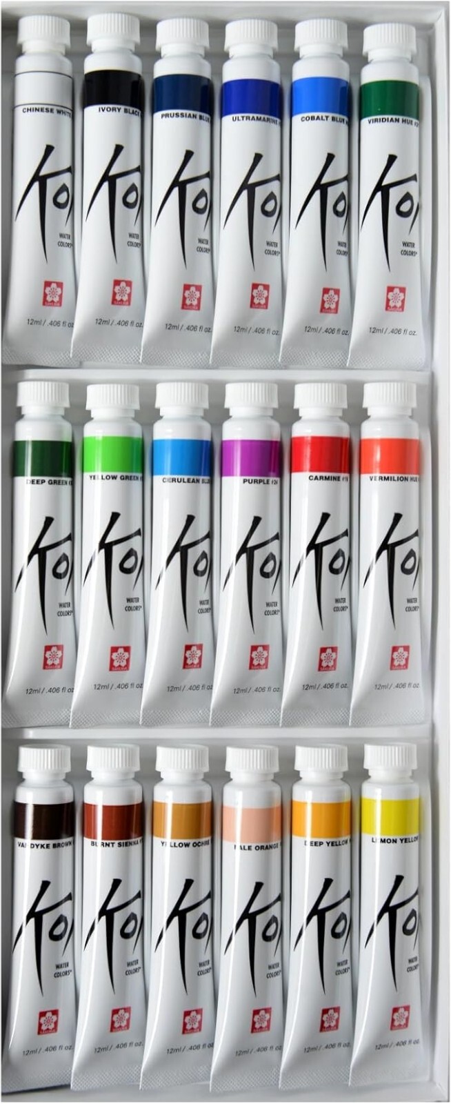 Sakura Japan Koi Water Color Set of 18 Tubes Assorted Colors Watercolors 12 ml