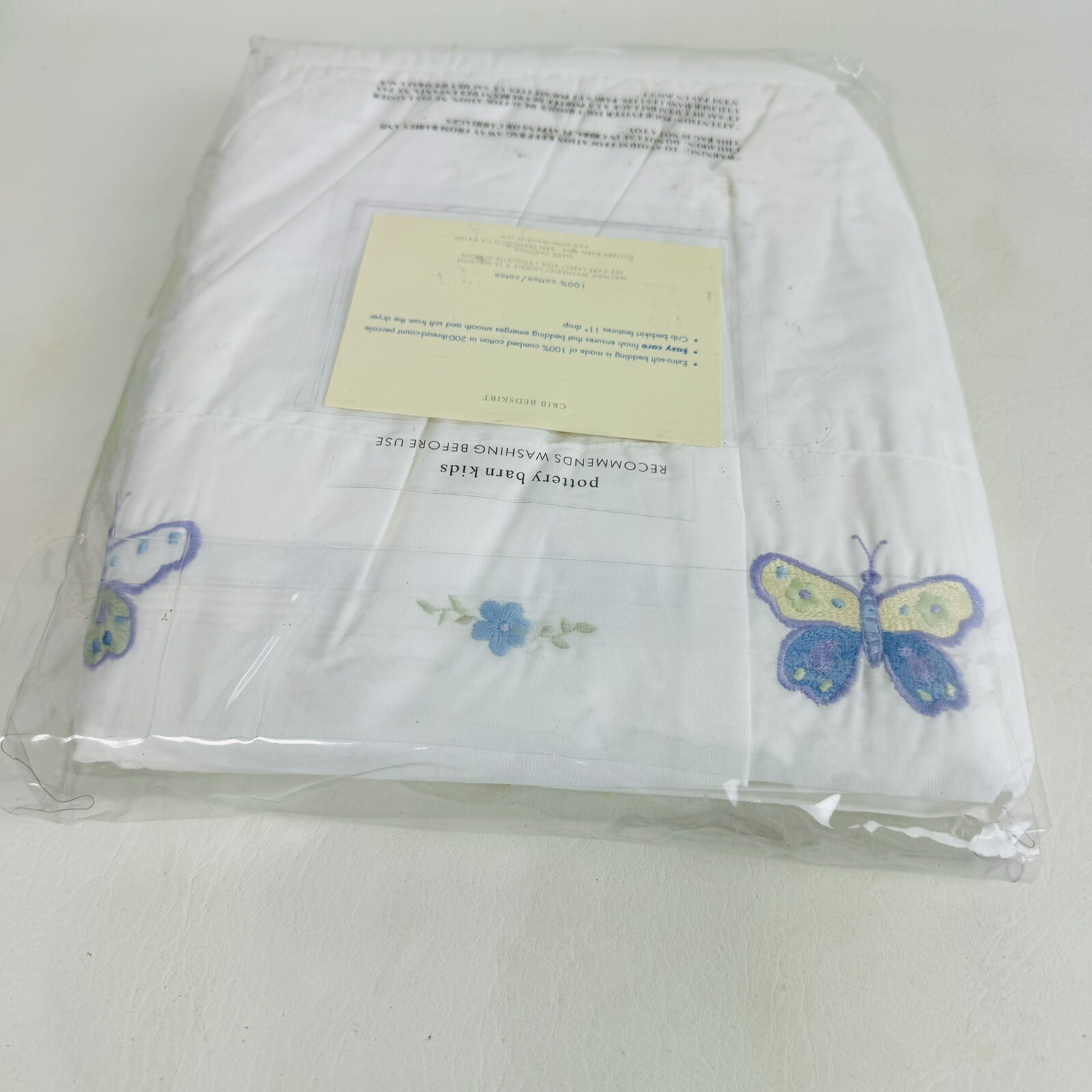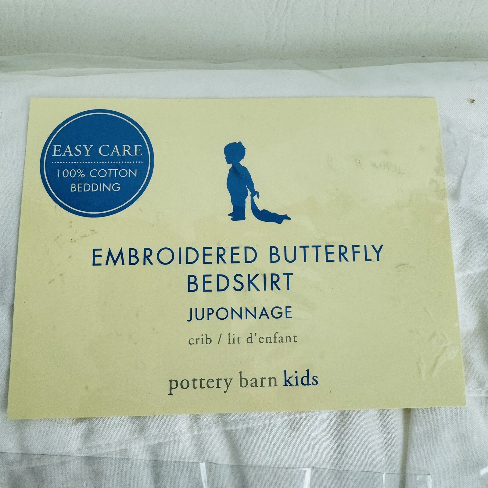 Pottery Barn Kids Embroidered Butterfly Crib Bed Skirt Cotton Baby Nursery New
