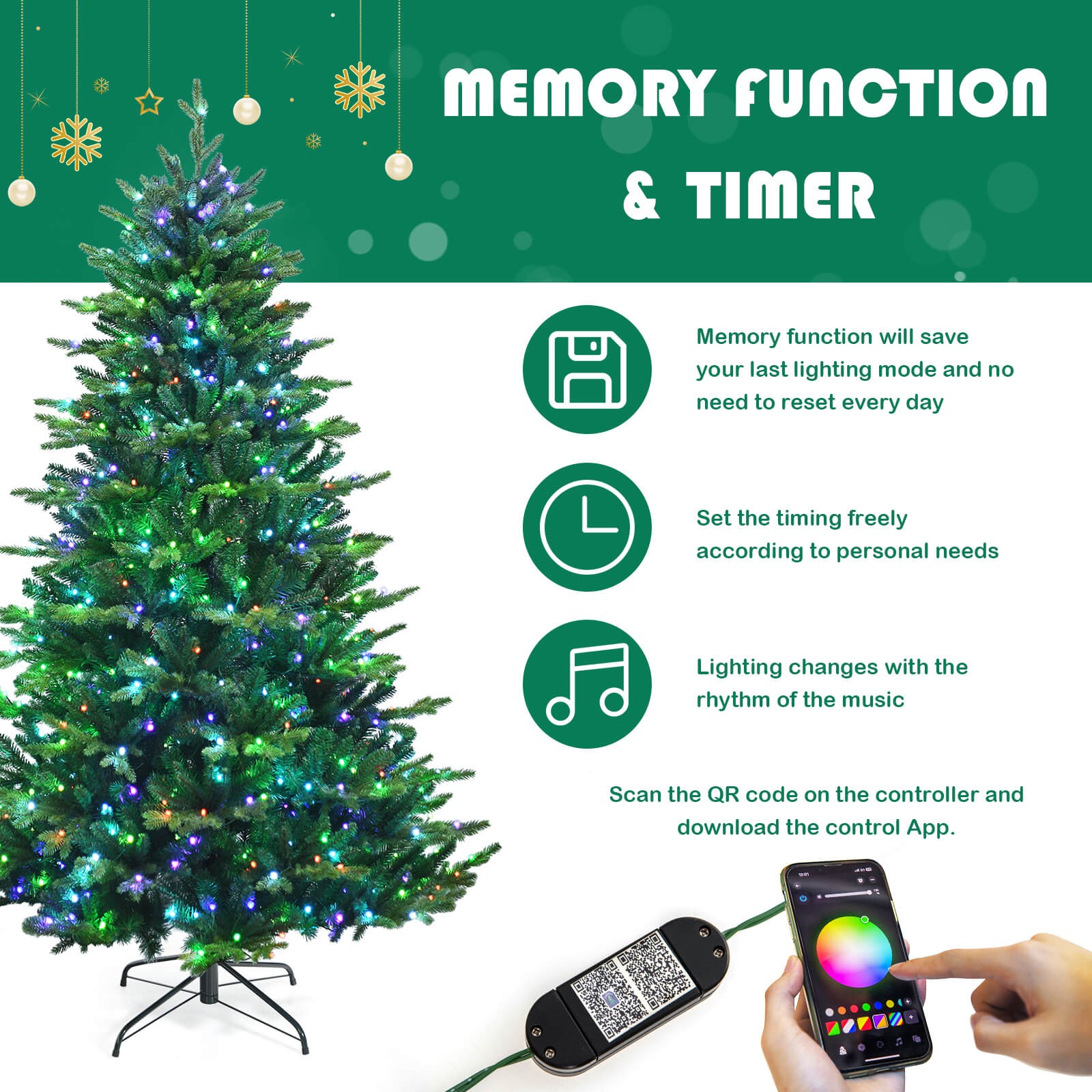 Особенности: Leafy Branch Tips in Two Types, 8-layer Color Changing LED Lights