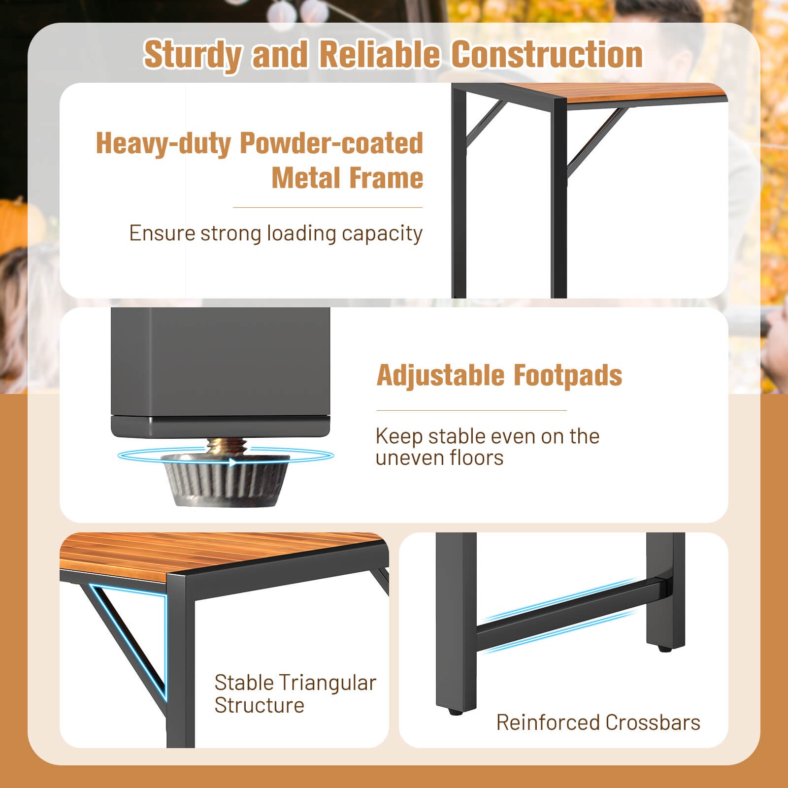 3 PCS Patio Dining Set for 6 People 53 Acacia Wood Picnic Table 2 Benches