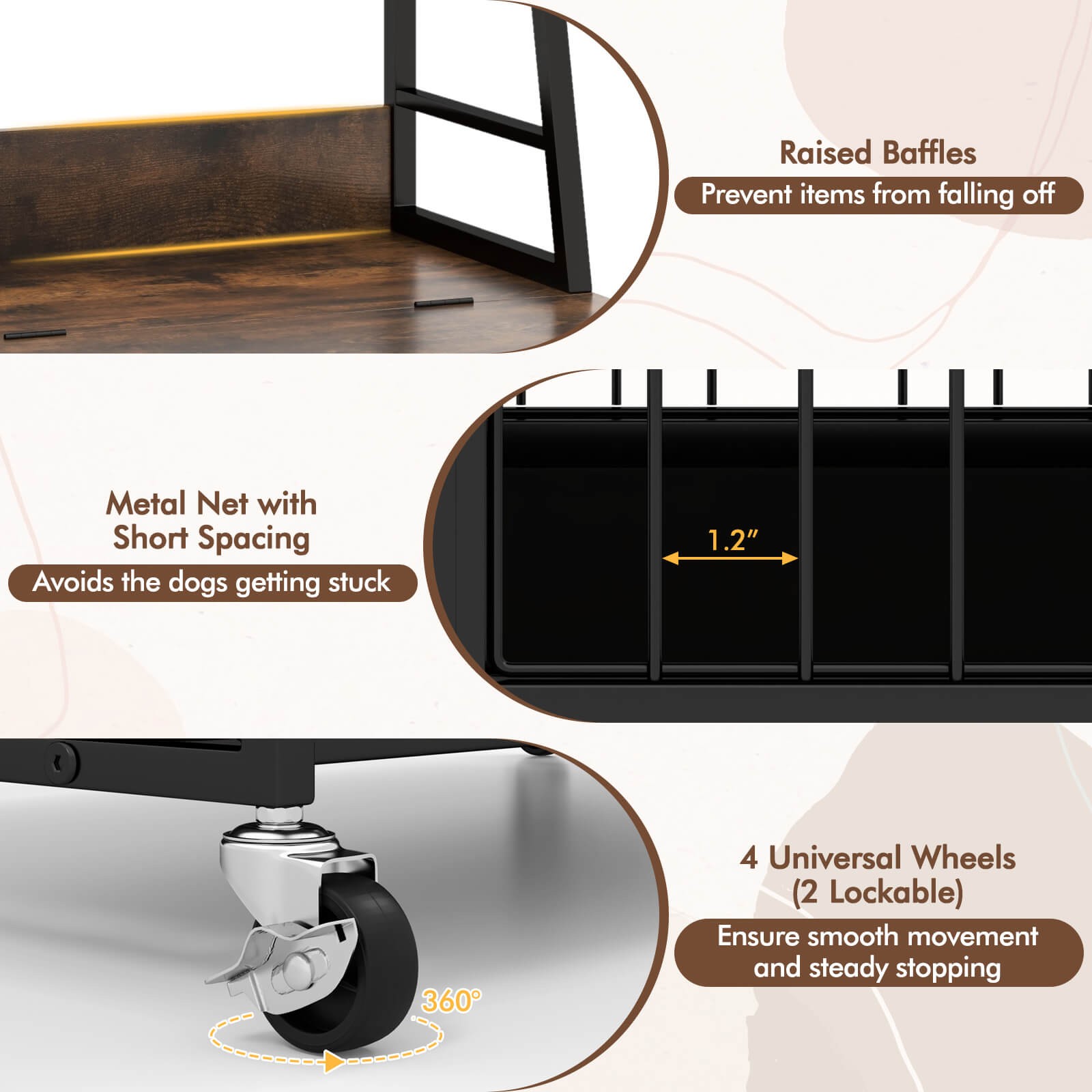 Dog Crate Furniture with Storage Shelves Industrial Dog Kennel w/ Flip-up Top