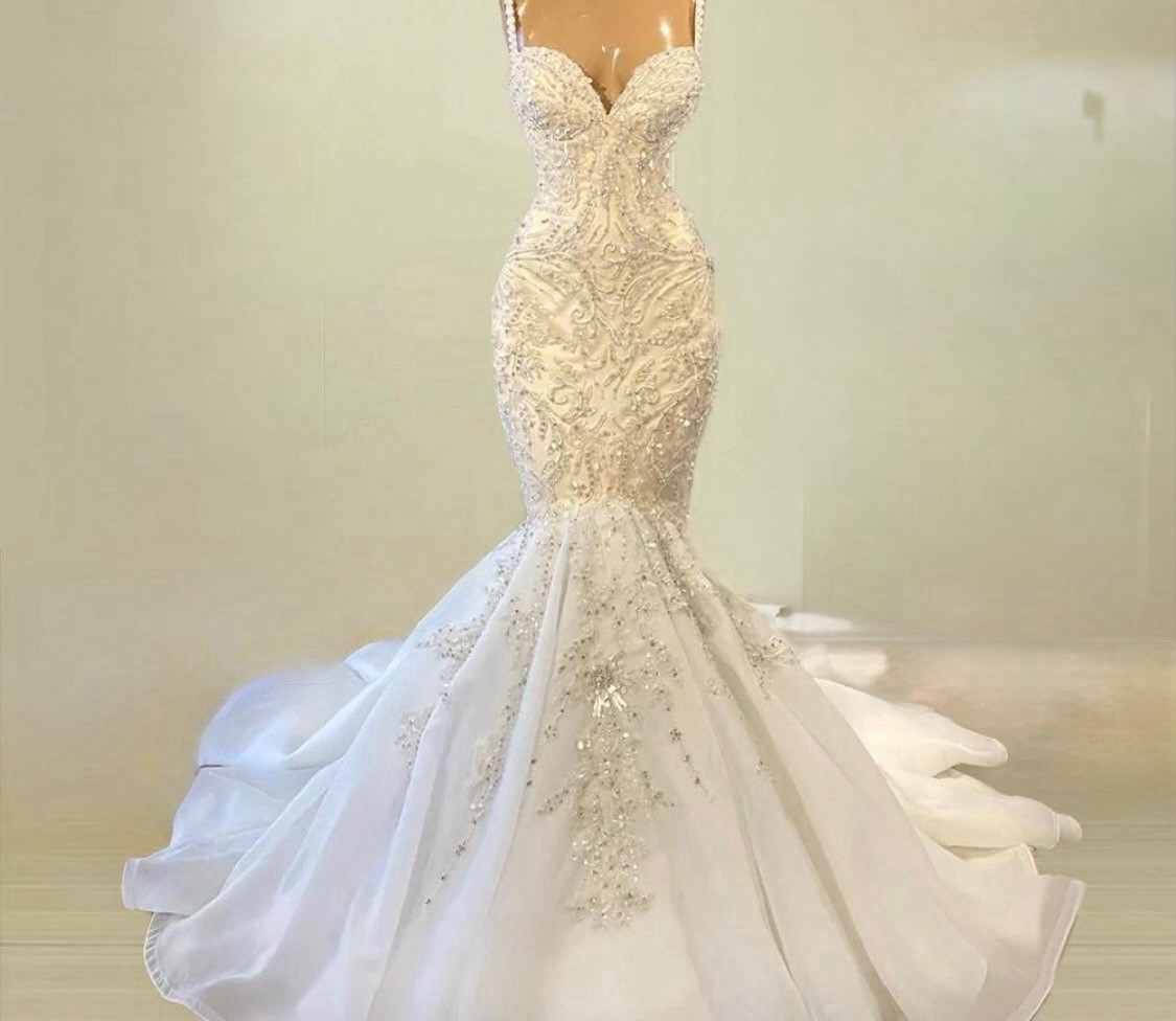 как выглядит Luxury Mermaid Wedding Dresses Beaded Appliques Vintage Lace Up Back Bridal Gown фото