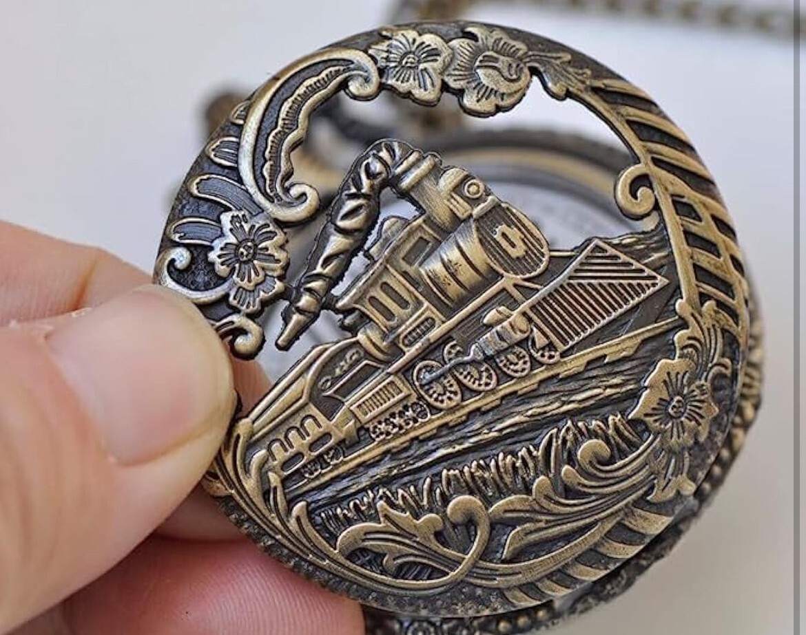 • Vintage Bronze Quartz Pocket Watch Train Locomotive Engine Design Gift Men Women