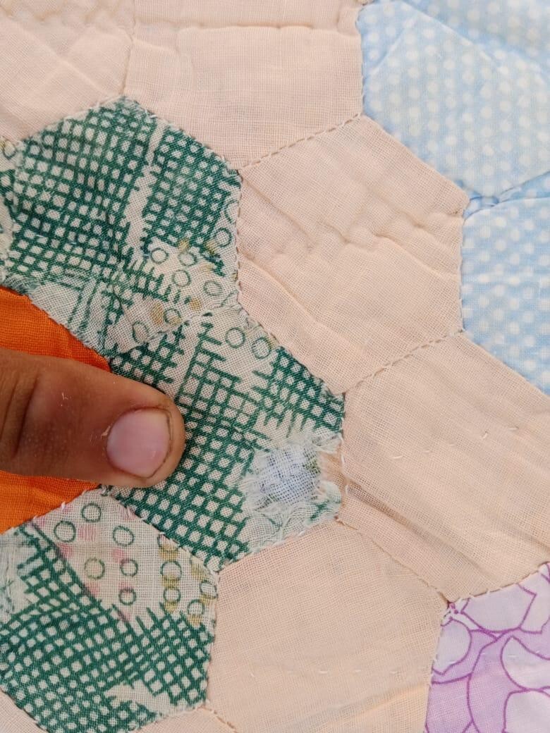 • Vintage Beautiful Quilt Different Pieces Hand Woven size 76x68 inches