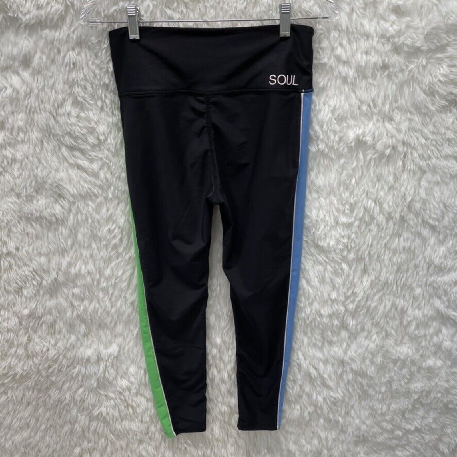 как выглядит SOUL by SOUL CYCLE leg tuxedo stripe leggings blue green black Size M фото