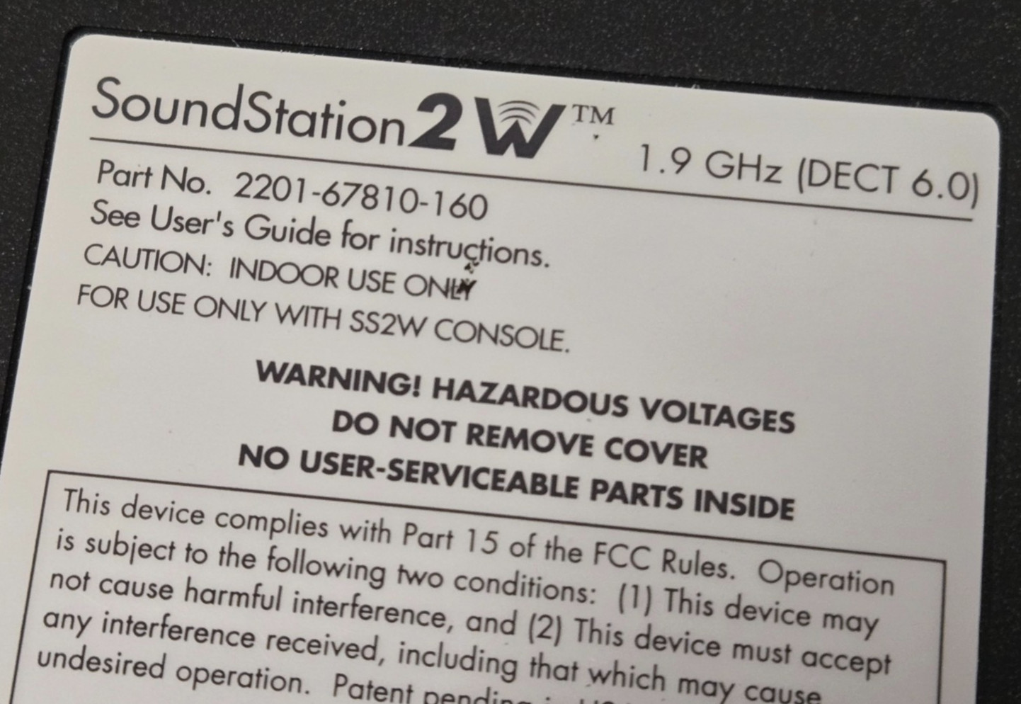 Polycom SoundStation 2W 2201-67810-160 Wireless Receiver Base 1.9 GHz DECT 6.0