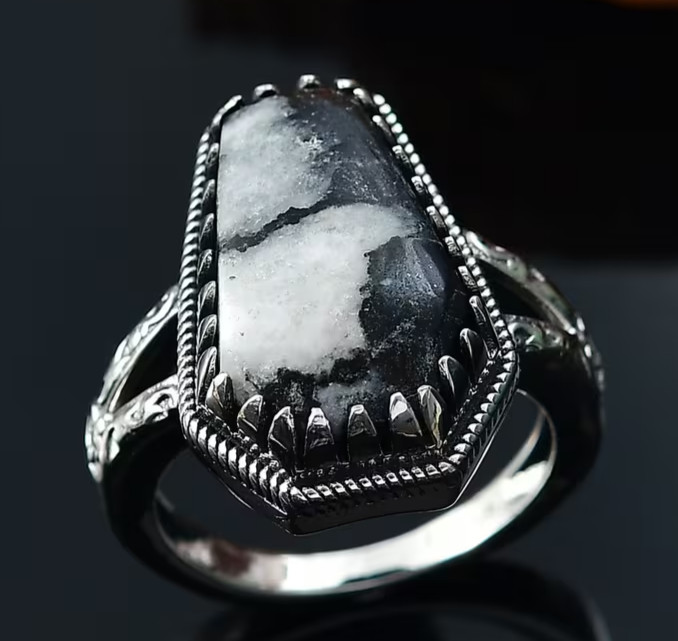 как выглядит Artisan Crafted White Buffalo 12.50 ctw Southwest Ring in Black Oxidized SS фото