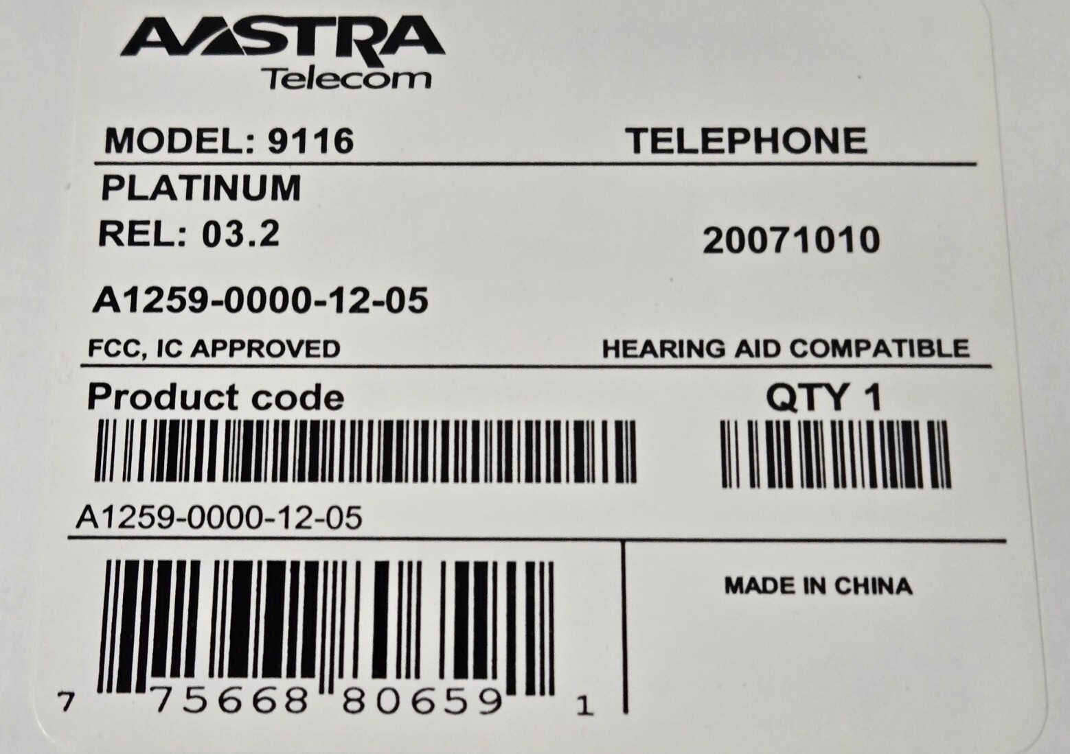 Aastra 9116 Platinum Single Line Corded Desk Telephone Phone - Brand New in Box