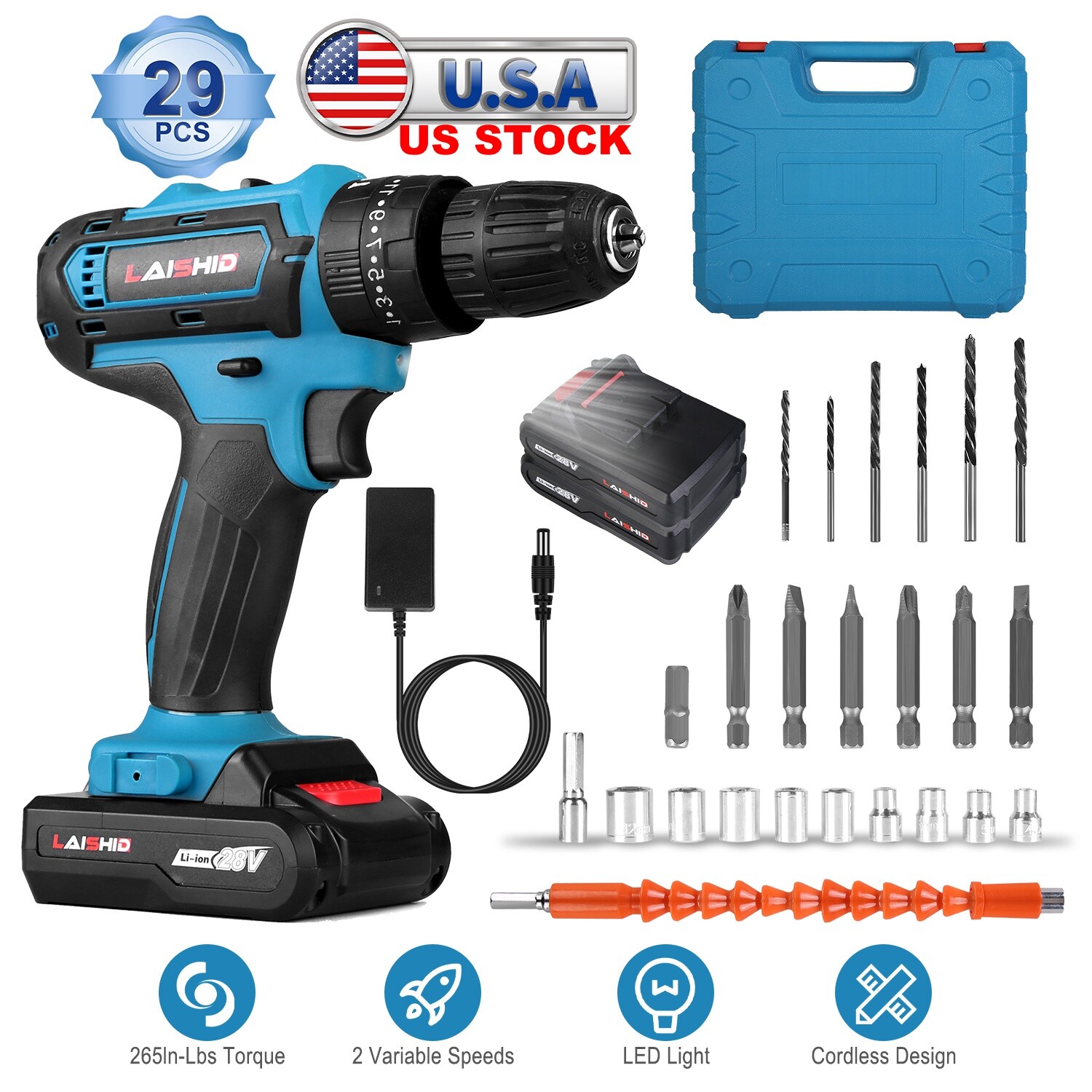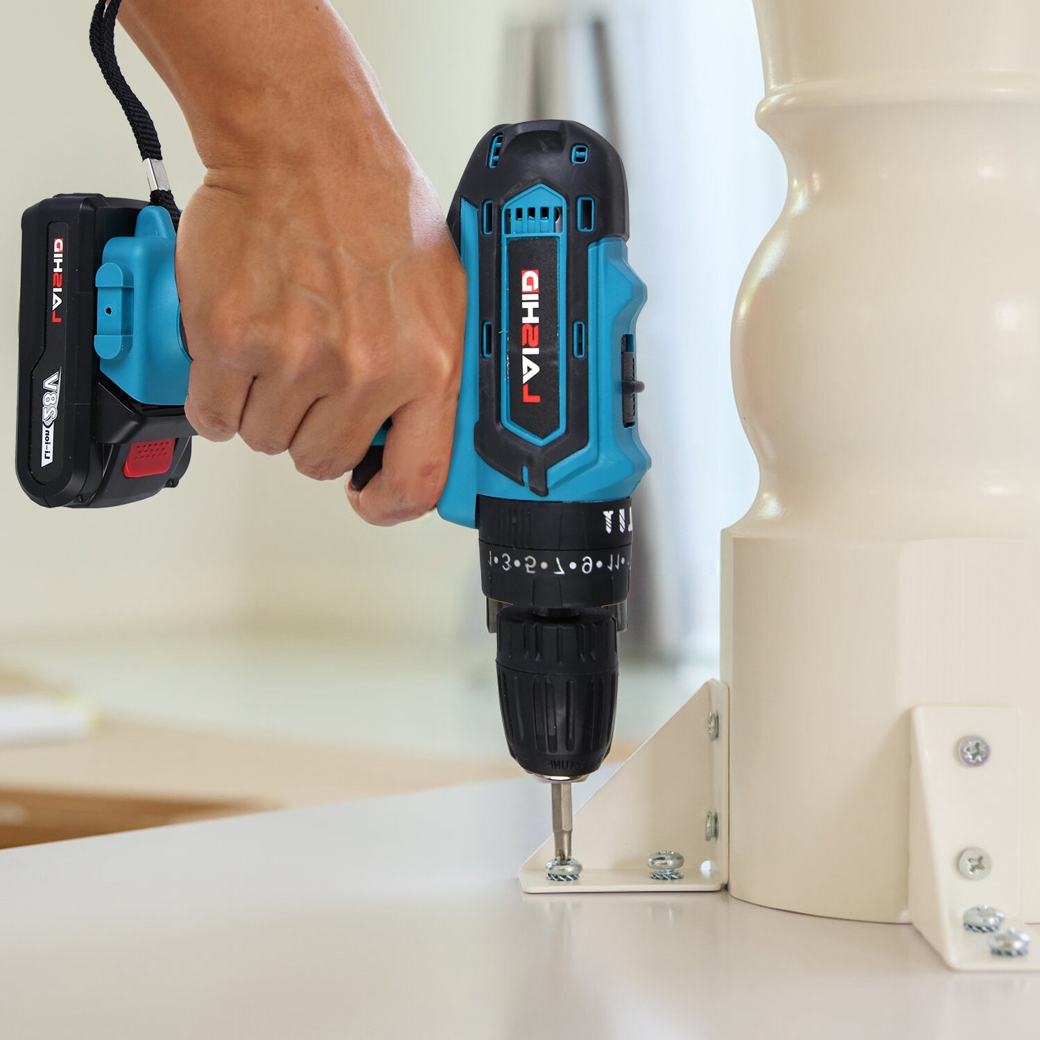 Electric Power Drill Driver Bits Set 3/8 Keyless Chuck with Battery and Charger