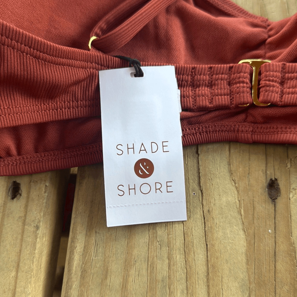 Shade Shore Large 12-14 Brown Shirred Ribbed Bikini Swim Bralette Top