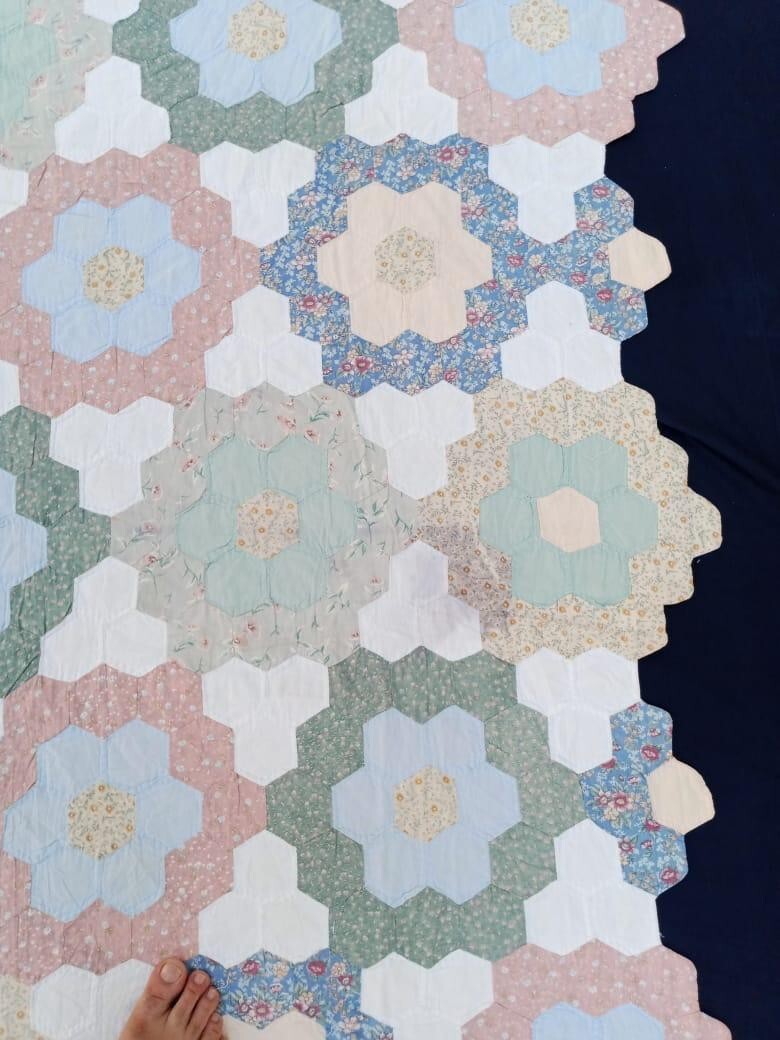 • Vintage Beautiful Quilt Different Pieces Hand Woven size 82x62 inches