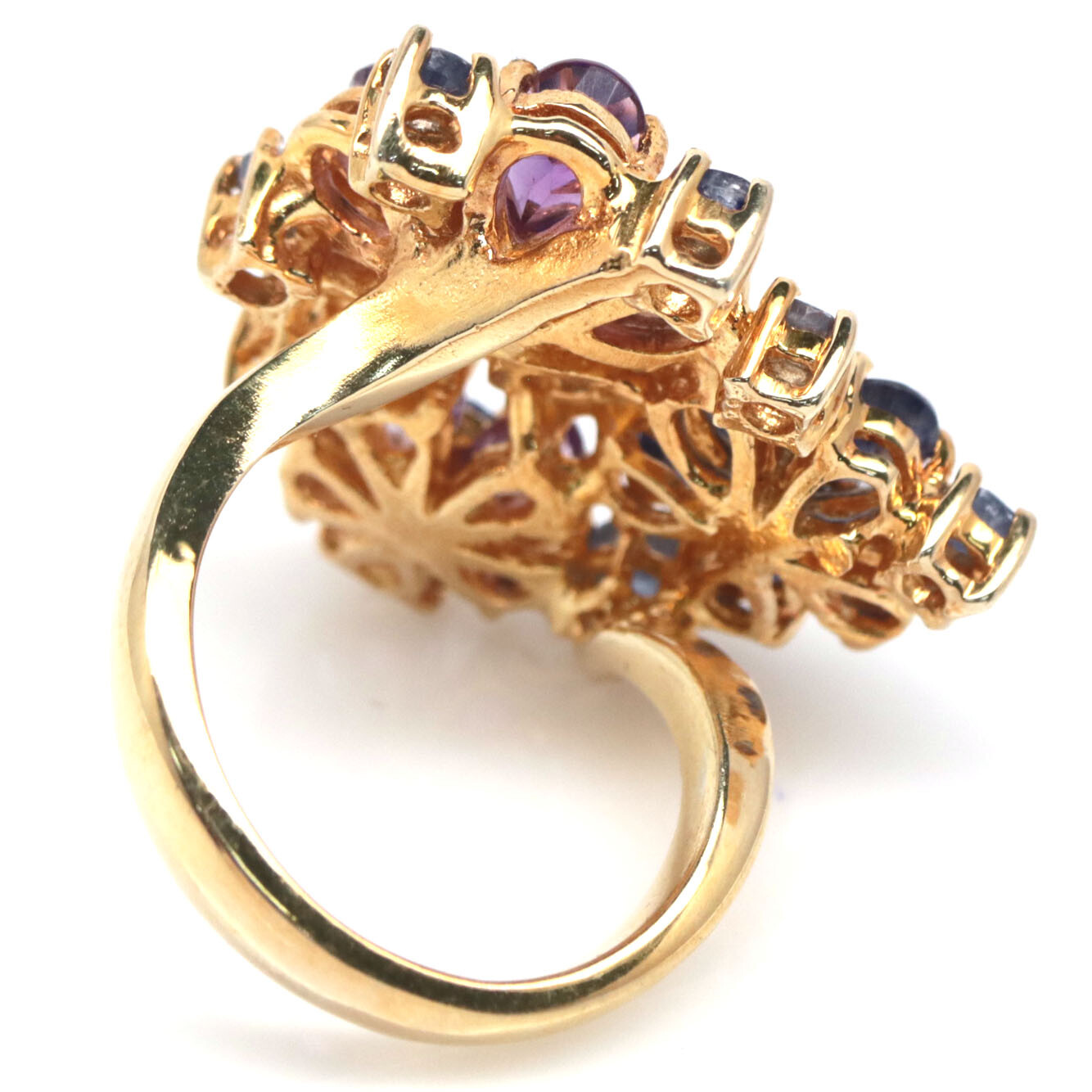как выглядит 925 Sterling Silver 4 x 6 mm. Purple Amethyst Blue Sapphire Ring Size 7 фото