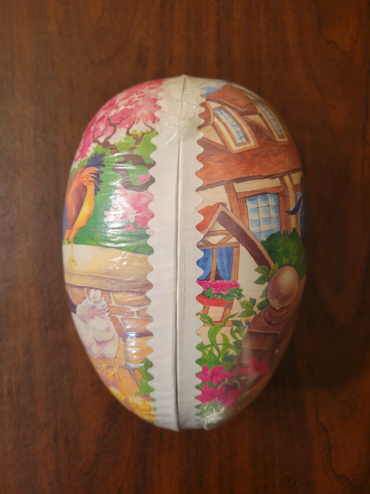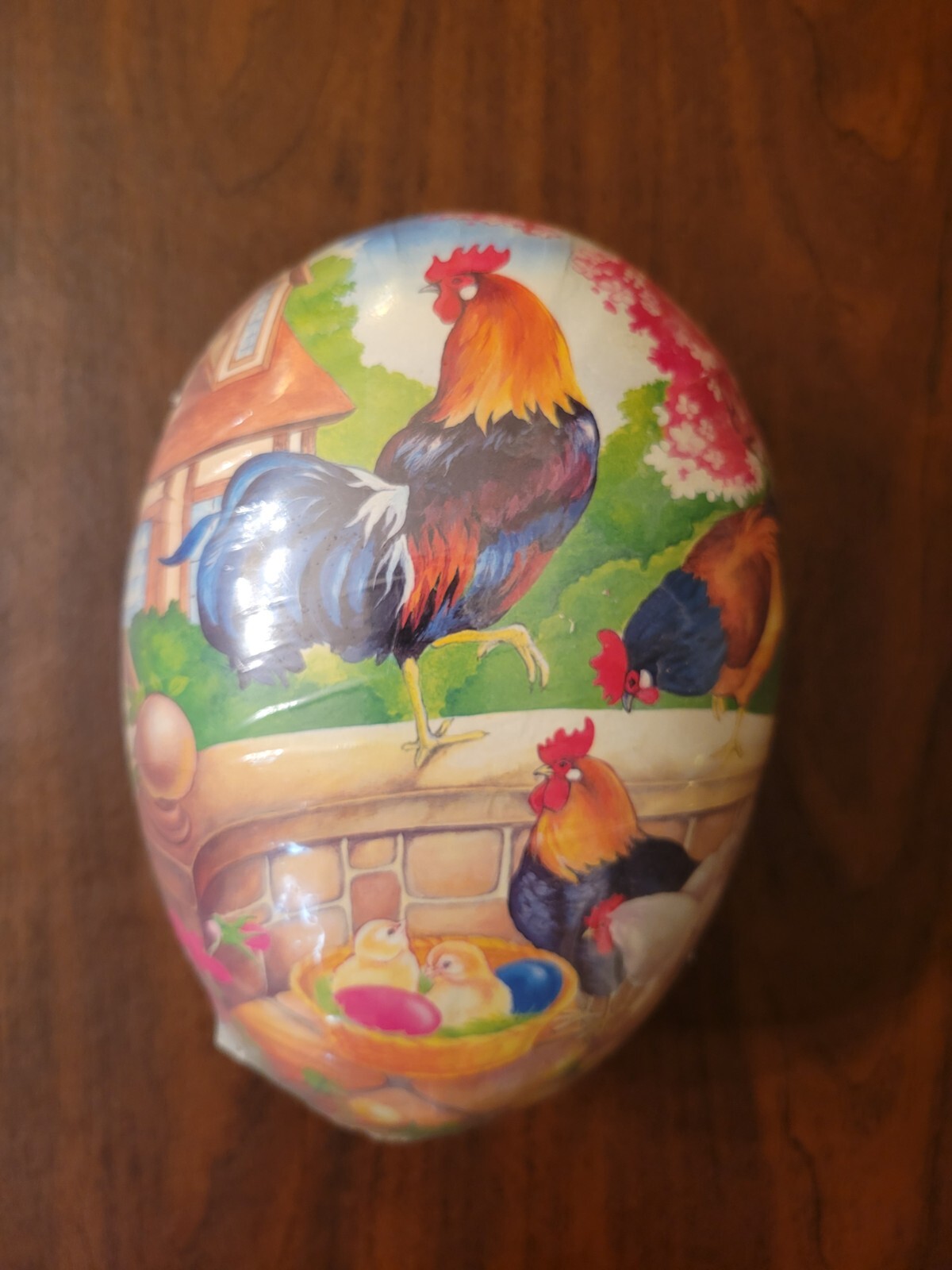 • NEW SEALED VTG Paper Mache Easter Egg Candy Container West Germany Roosters 7"