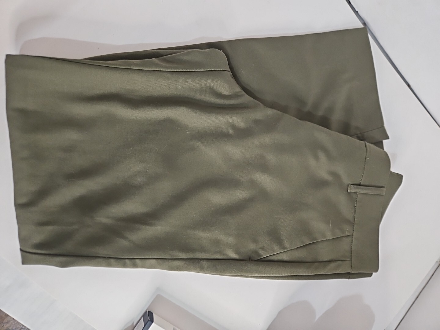 как выглядит Wildfang Pants Womens 2 OIive Green Tapered High Rise Chino 2 Pocket Trouser Pre фото