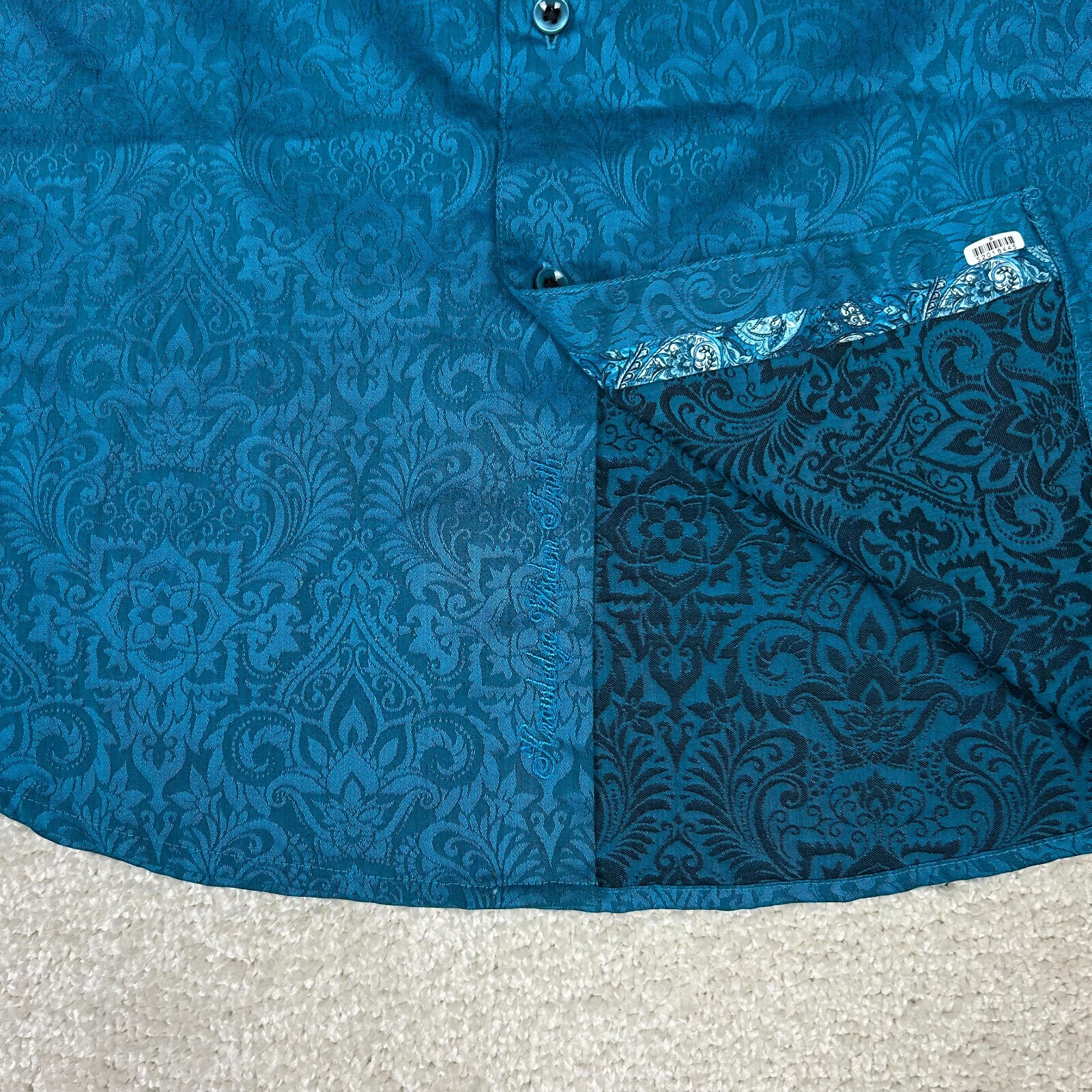 как выглядит Robert Graham Shirt Mens Large Blue Paisley Jacquard Damask Preppy Weekend фото