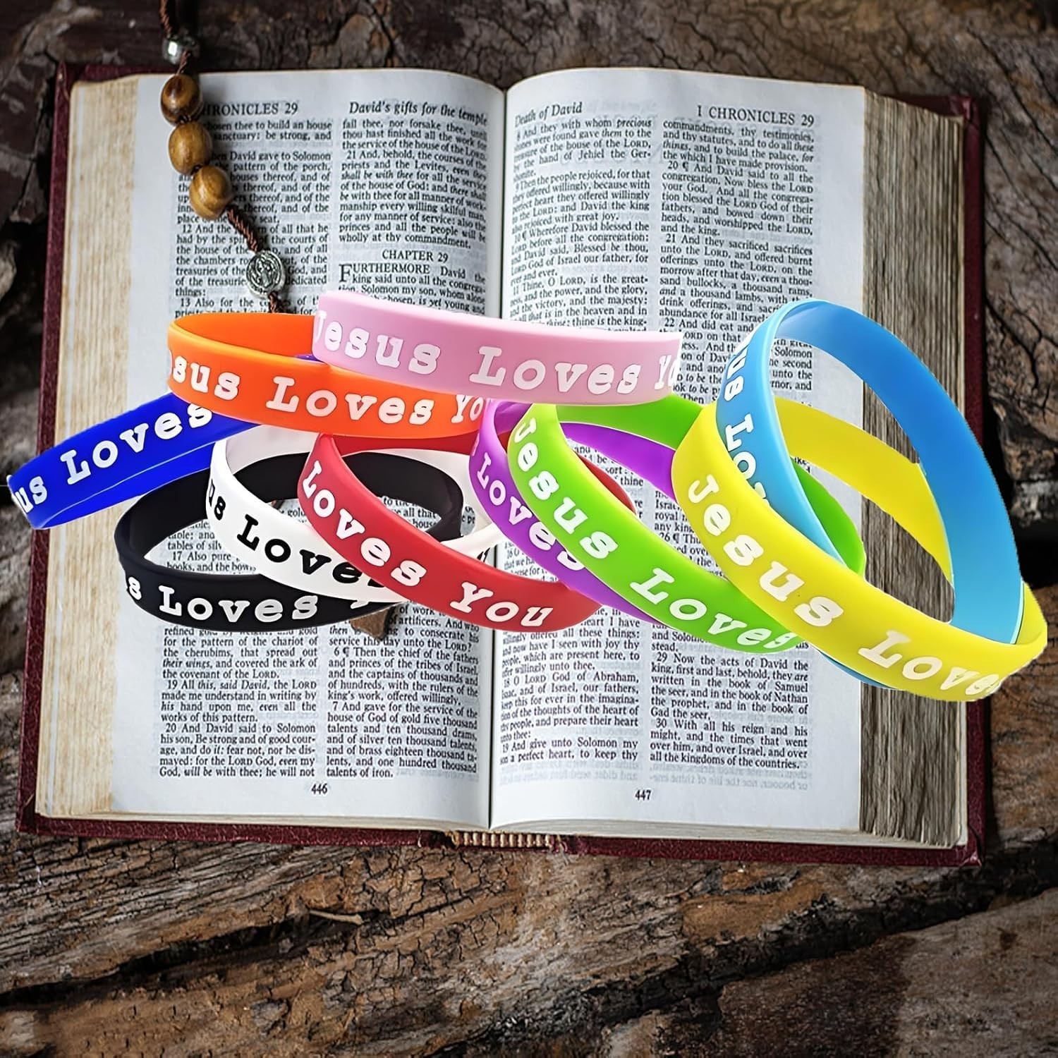 Number of Gemstones: 110 Pcs Jesus Loves You Silicone Bracelet, Colorful Christian Wri