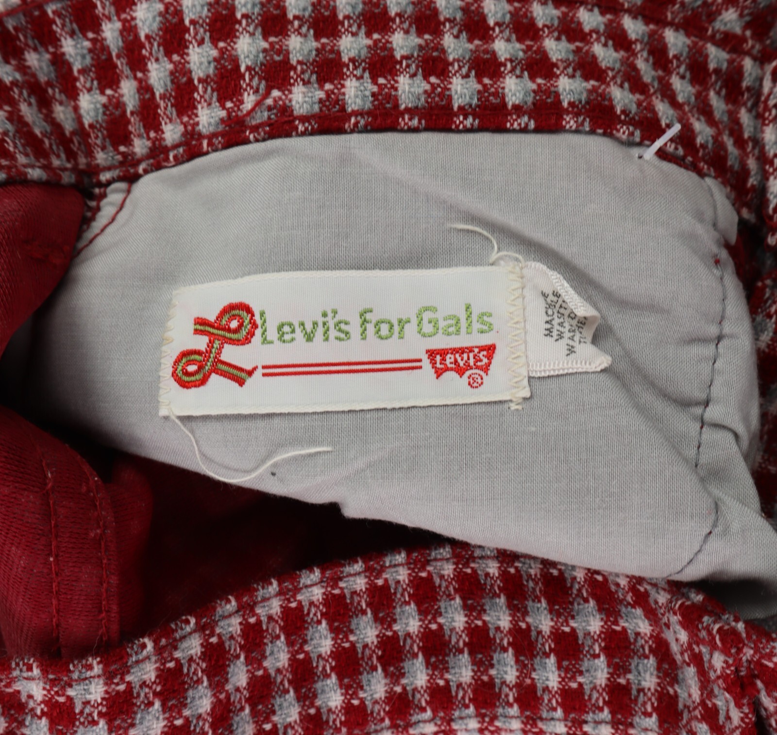 VTG 60s 70s LEVI S FOR GALS US Women's 28 x 28 Red White Plaid Bellbottoms BIG E