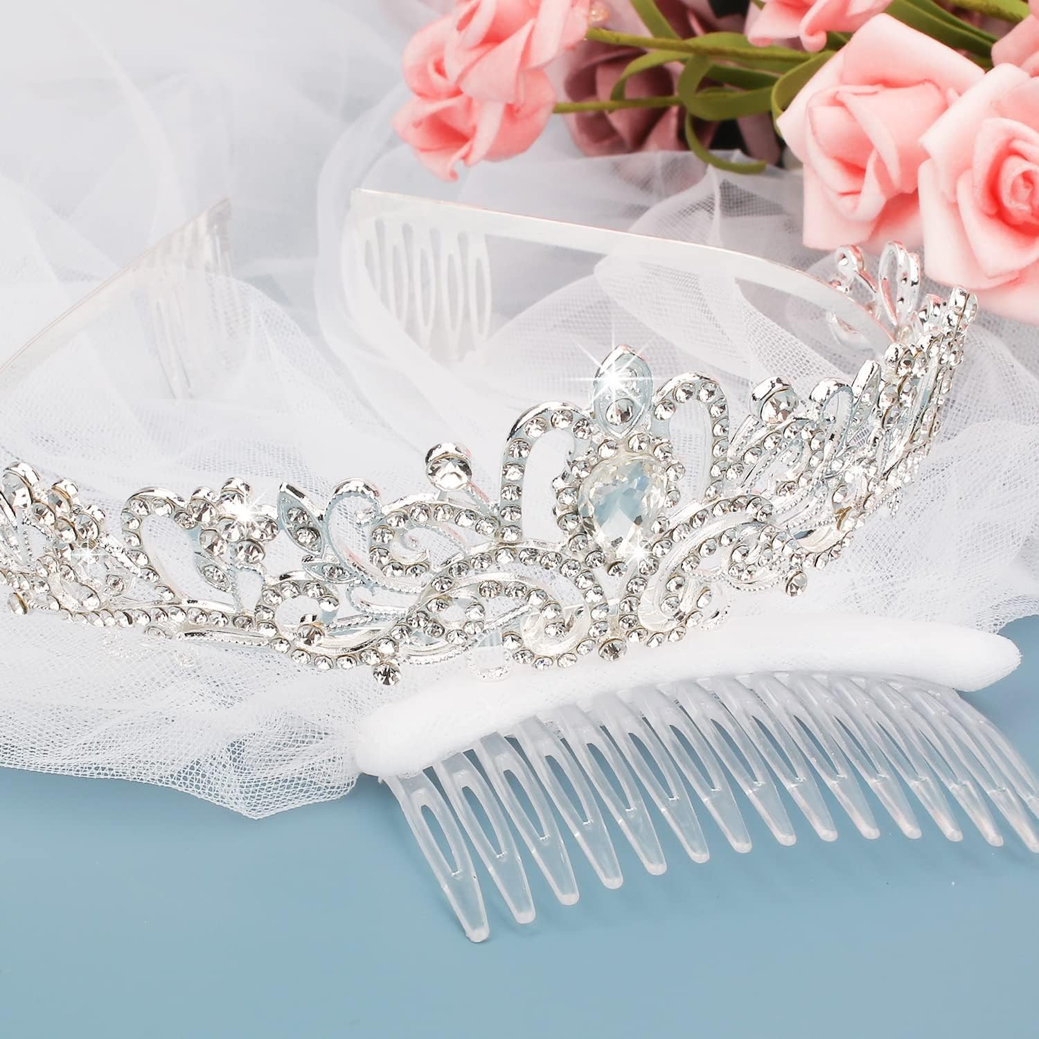 Didder Tiara and Lace Bridal Veil, Crown Wedding Veils Headpieces for...