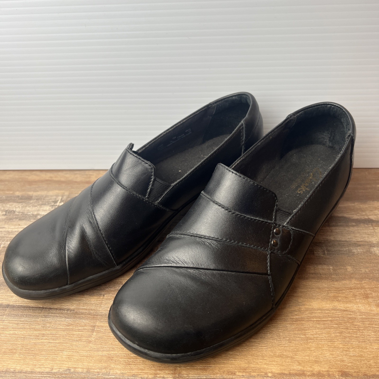 как выглядит Clarks Collection Womens May Marigold Black Leather Comfort Loafer Shoes Sz. 7M фото