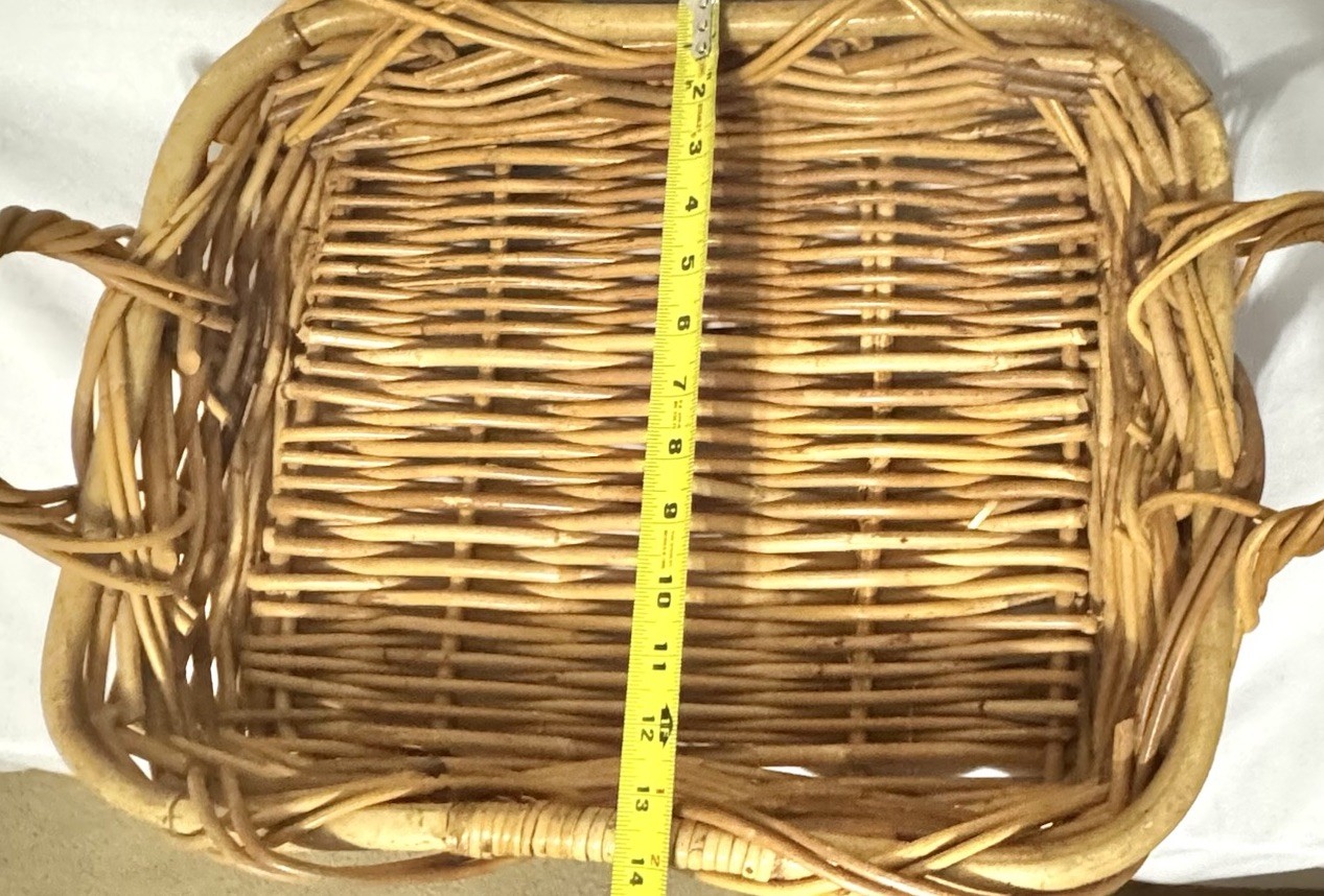 Large/Vintage/Hand Woven/ Wicket Serving Tray/20.5 LX 14 W X 7 Tall W-Handle