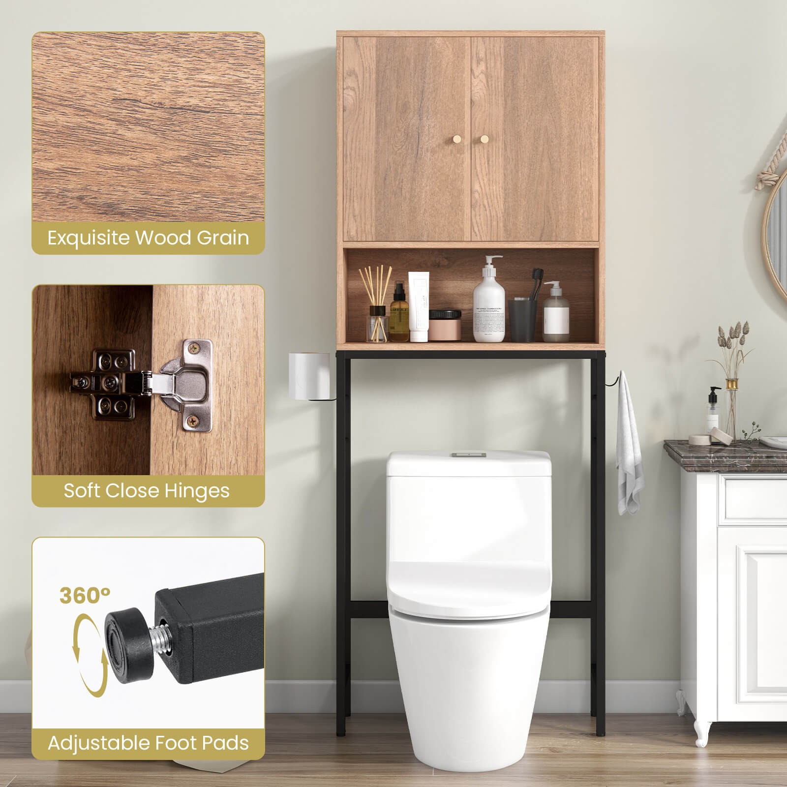 Over The Toilet Storage Cabinet Free Standing Toilet Rack w/ Adjustable Shelf