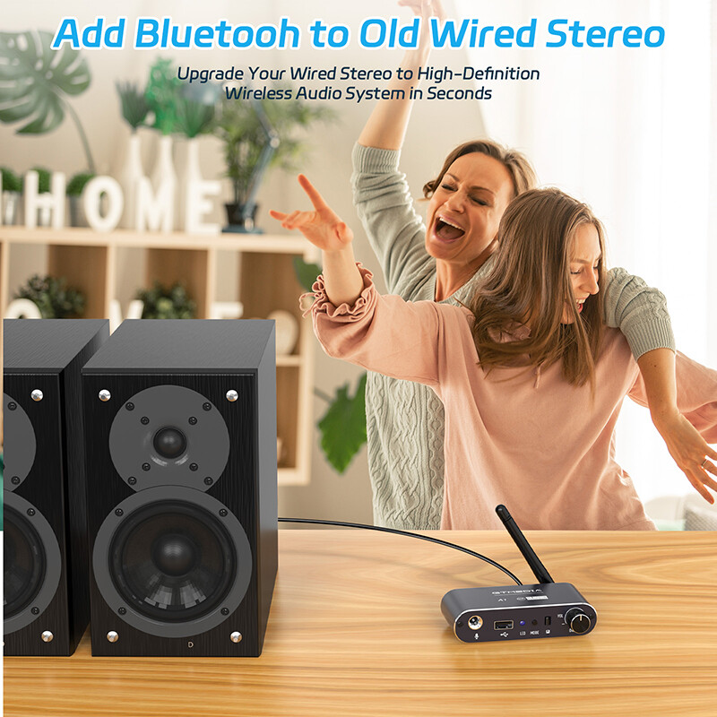 GTMEDIA A1 Bluetooth 5.2 Receiver for Home Stereo USB MIC RCA Coaxial Adapter US