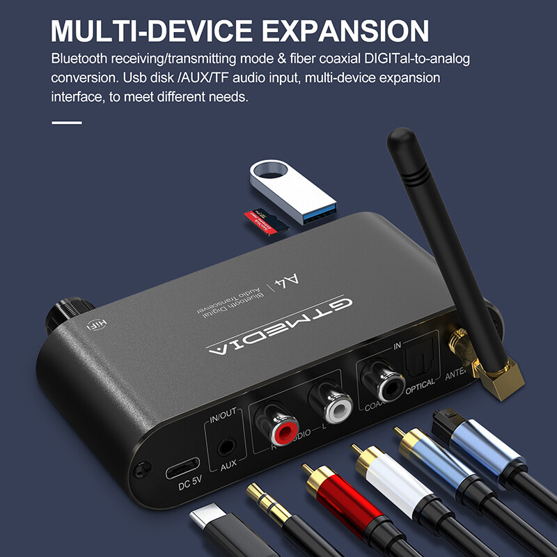 Bluetooth 5.1 Receiver Transmitter Coaxial Optical USB TF RCA AUX Audio Adapter